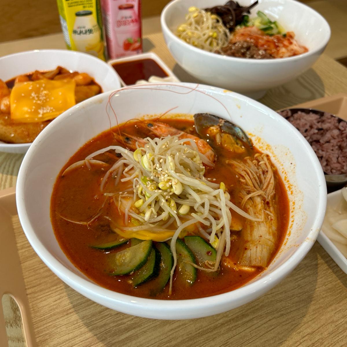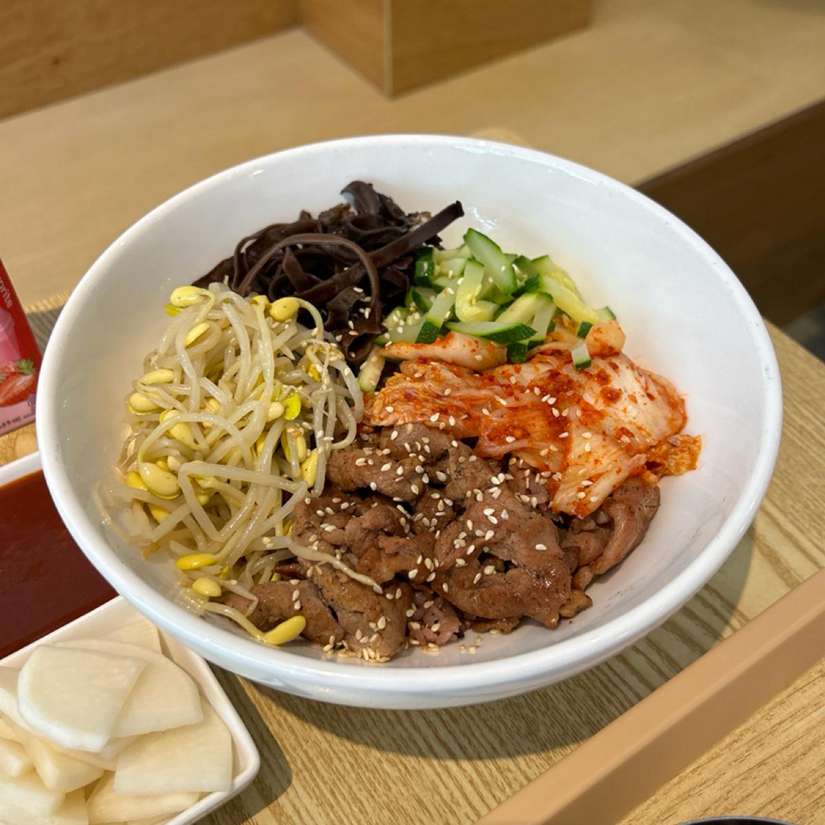 It includes shredded zucchini, yellow bean sprouts, black fungus, and kimchi,