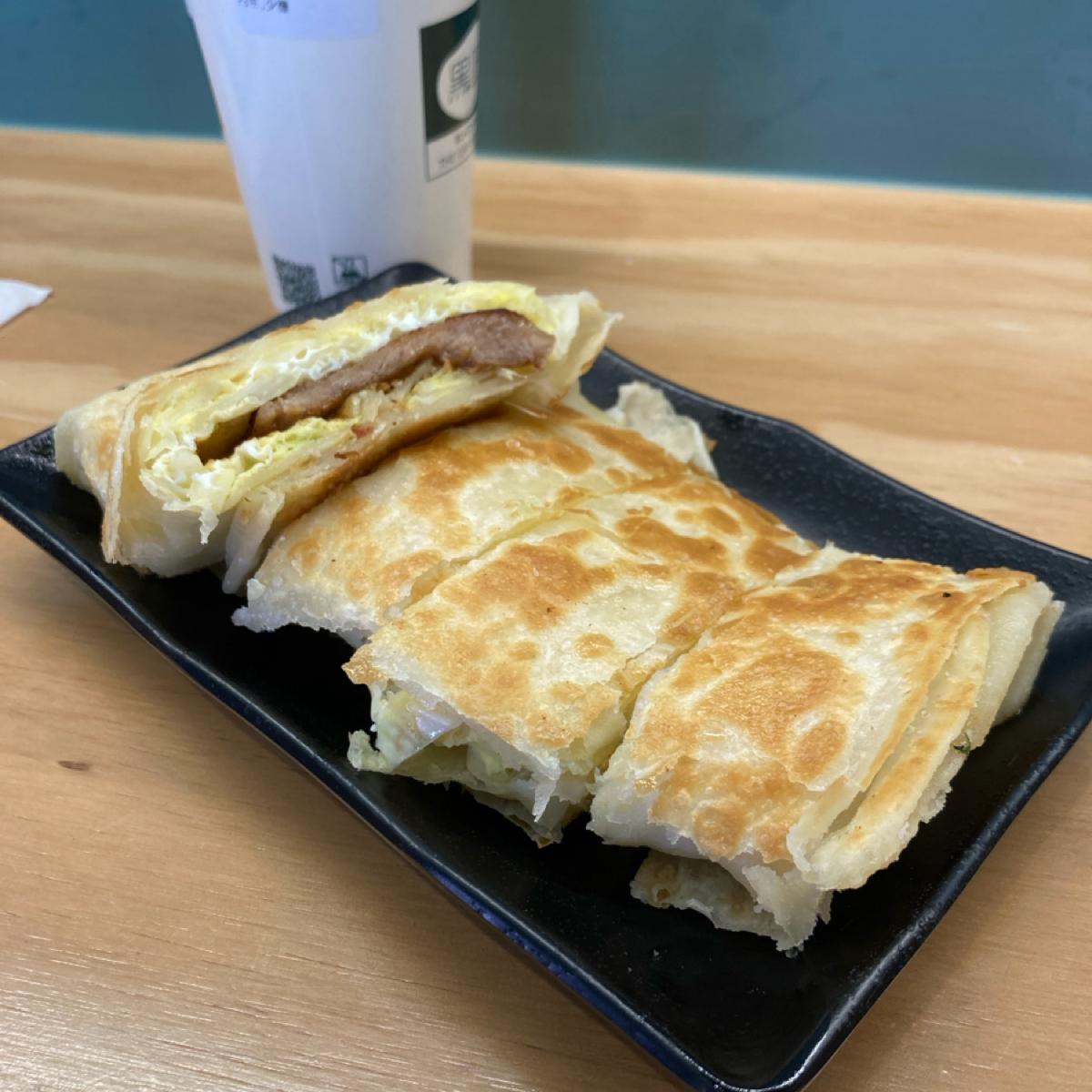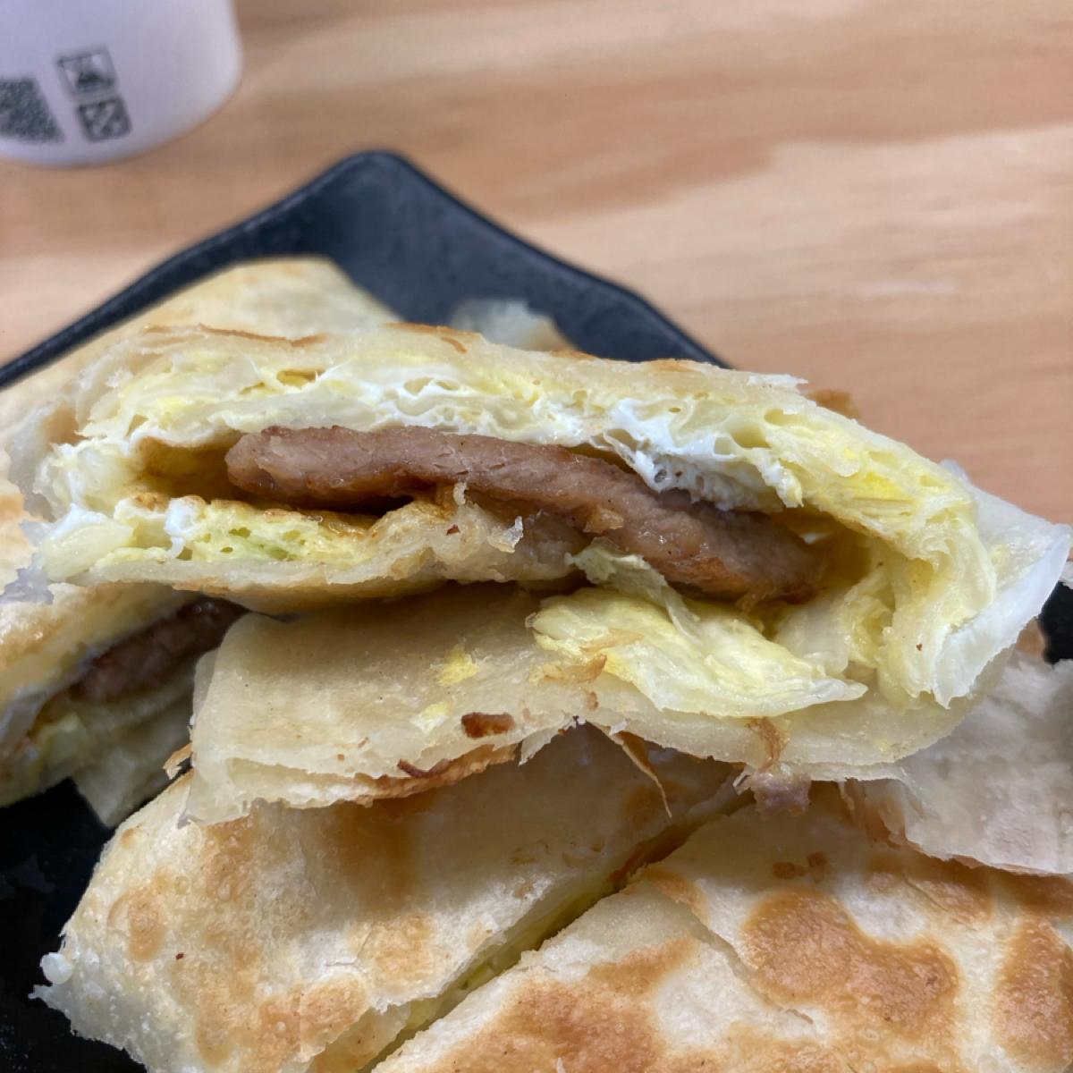 The pork chop crispy egg pancake is very thick. The first bite looks like Northeastern flatbread and not like an egg pancake. The crust has a floury texture and the filling is mixed with eggs and vegetables. You can taste the slightly sweet taste of vegetables. This kind of pork chop is not my favorite. , I think I can order the original egg pancake next time.