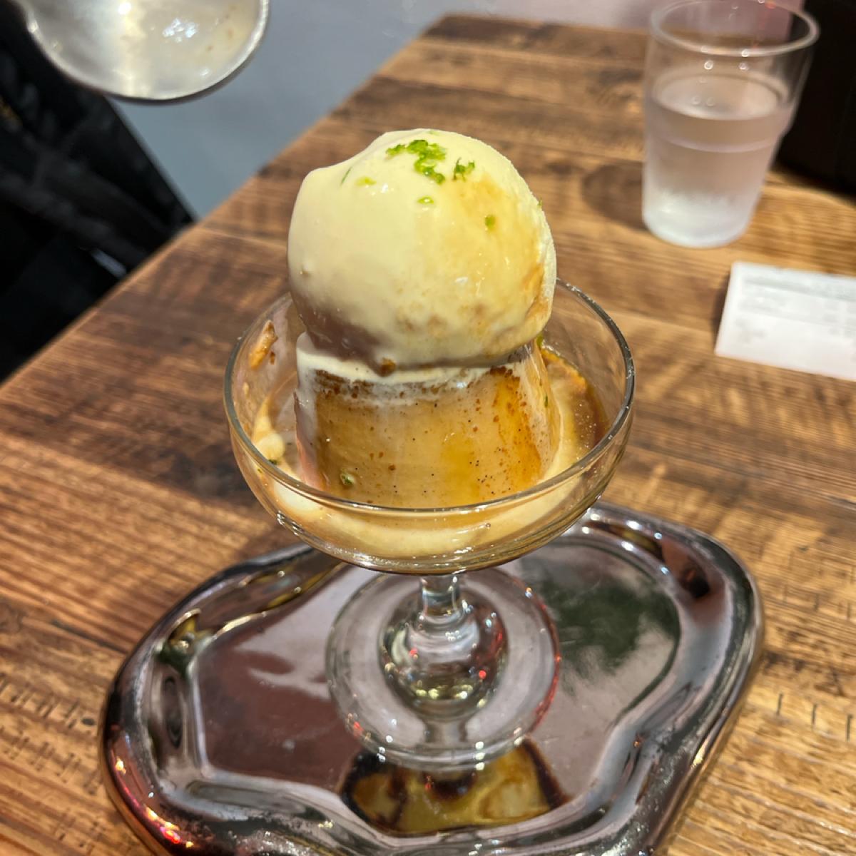 Please come and order it! The pudding has a dense texture, and you can also see dark vanilla seeds in it. The caramel is bitter-sweet, and it is not greasy at all when paired with ice cream. I love it😍
