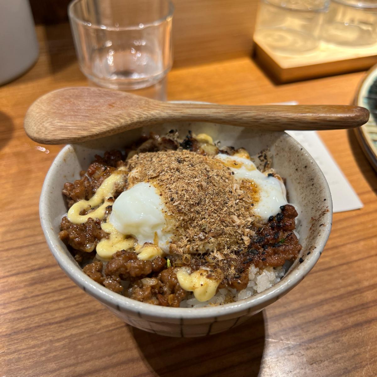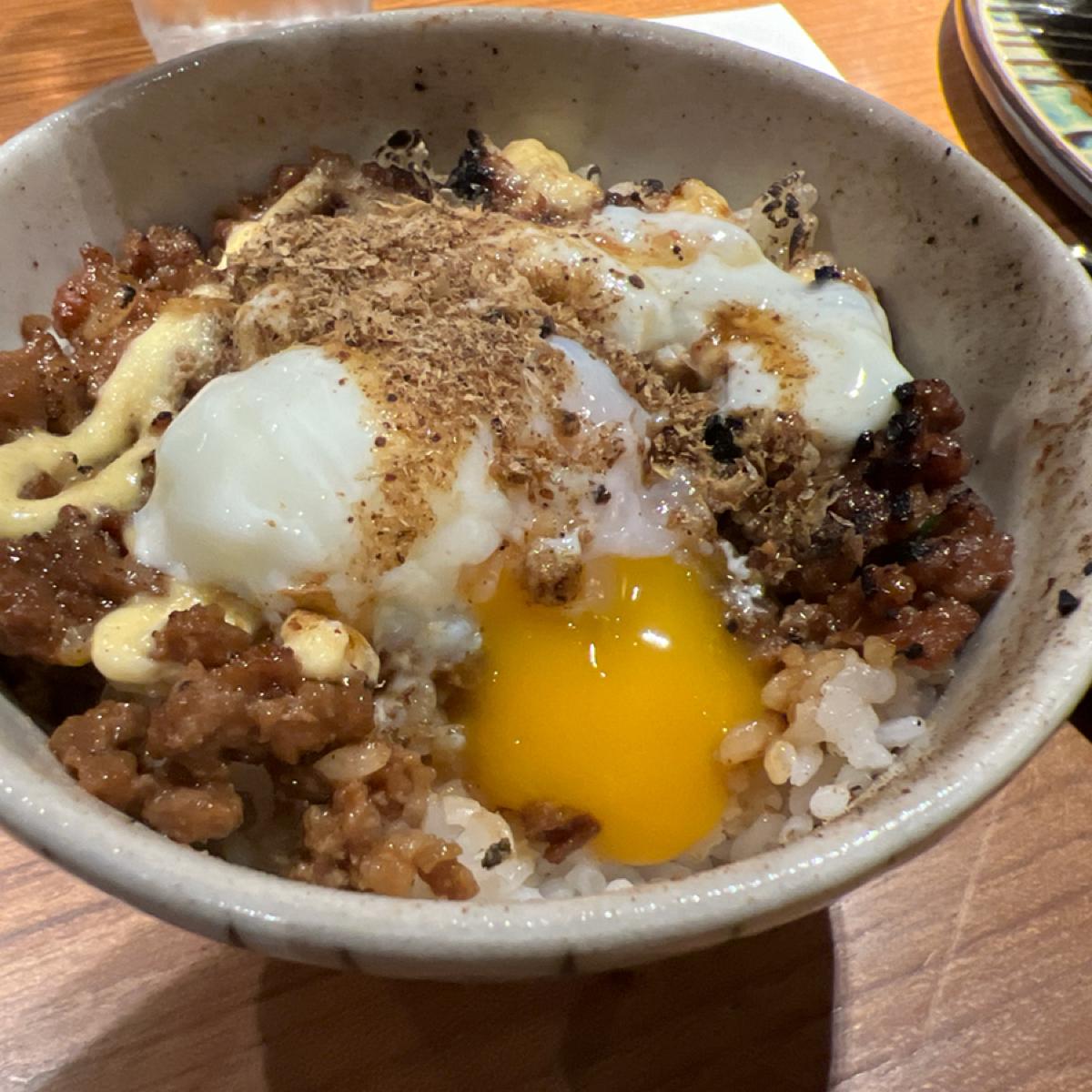 The TKG rice is heated with braised pork on top, giving it a slightly burnt aroma. The raw egg is beaten and bonito flakes are sprinkled on top to enhance the flavor.