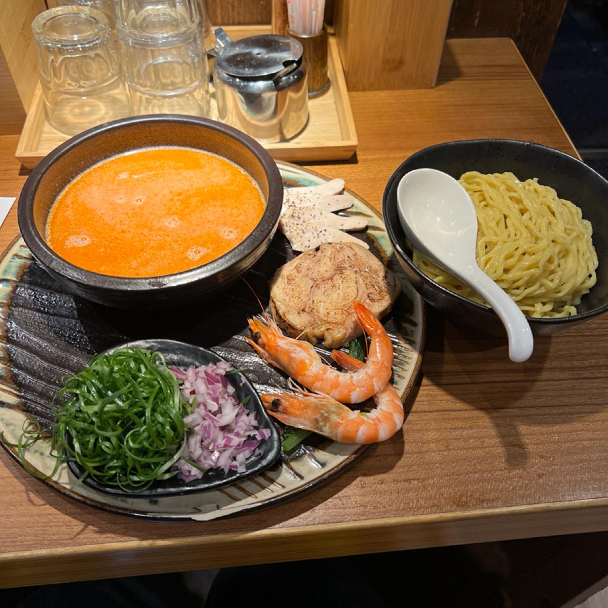 The thick ebi tsukemen soup has a strong shrimp flavor, the tsukemen are cold, and there are side dishes such as shrimp, chicken, green onions, and onions. The noodle is chewy and chewy, so those who like it softer may find it a bit hard. Halfway through the meal, the waiter will ask if you want to reheat it or add broth. The medium portion is satisfying.