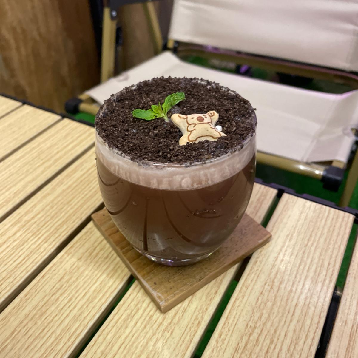 Cocoa made with Valrhona chocolate sprinkled with oreo shards