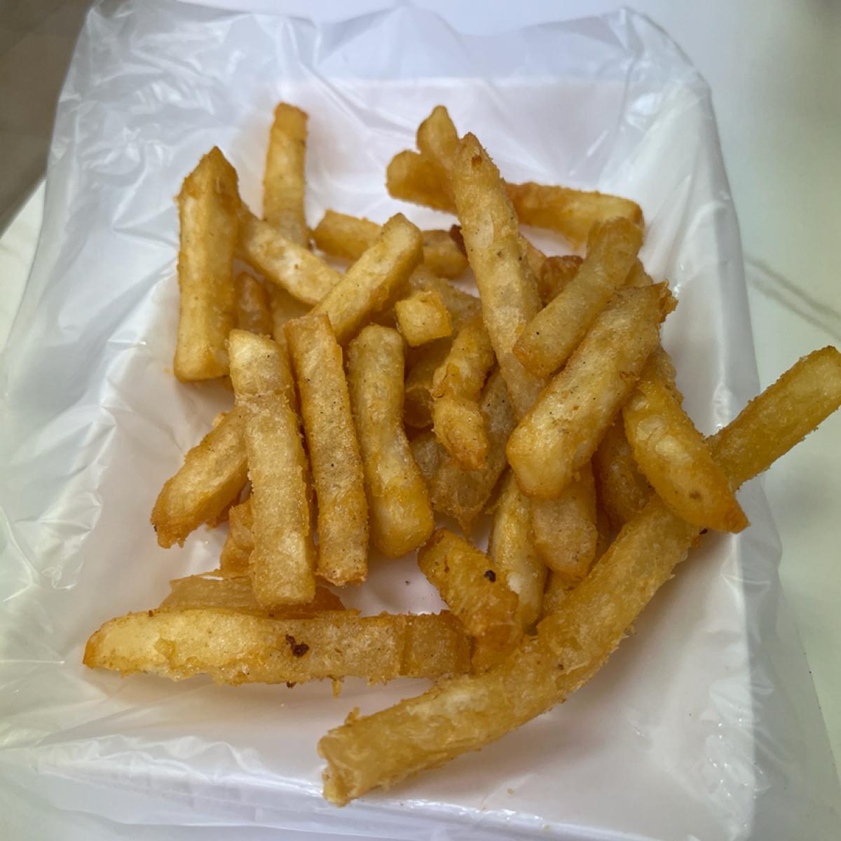 The French fries are not bad, but they are a bit salty and need to be pressed with something to taste better.