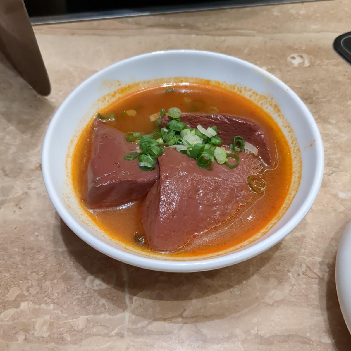 We also ordered duck blood and old-skinned tender meat, both of which are highly recommended. I think it's a bit strange to add duck blood to the soup, so we ate it directly. The seasoning itself is very sufficient. The duck blood has a good flavor. It should be because of the addition of seasonings such as star anise and Sichuan peppercorns. It is very fragrant. The old skin is tender and the meat is thin, and the inside is smooth and tender. It is a successful dish in itself. The main difference is that it is not topped with the usual sauce, so it is recommended to cook it in the soup to let the skin absorb the flavor of the shochu chicken. It has a special and delicious taste.
