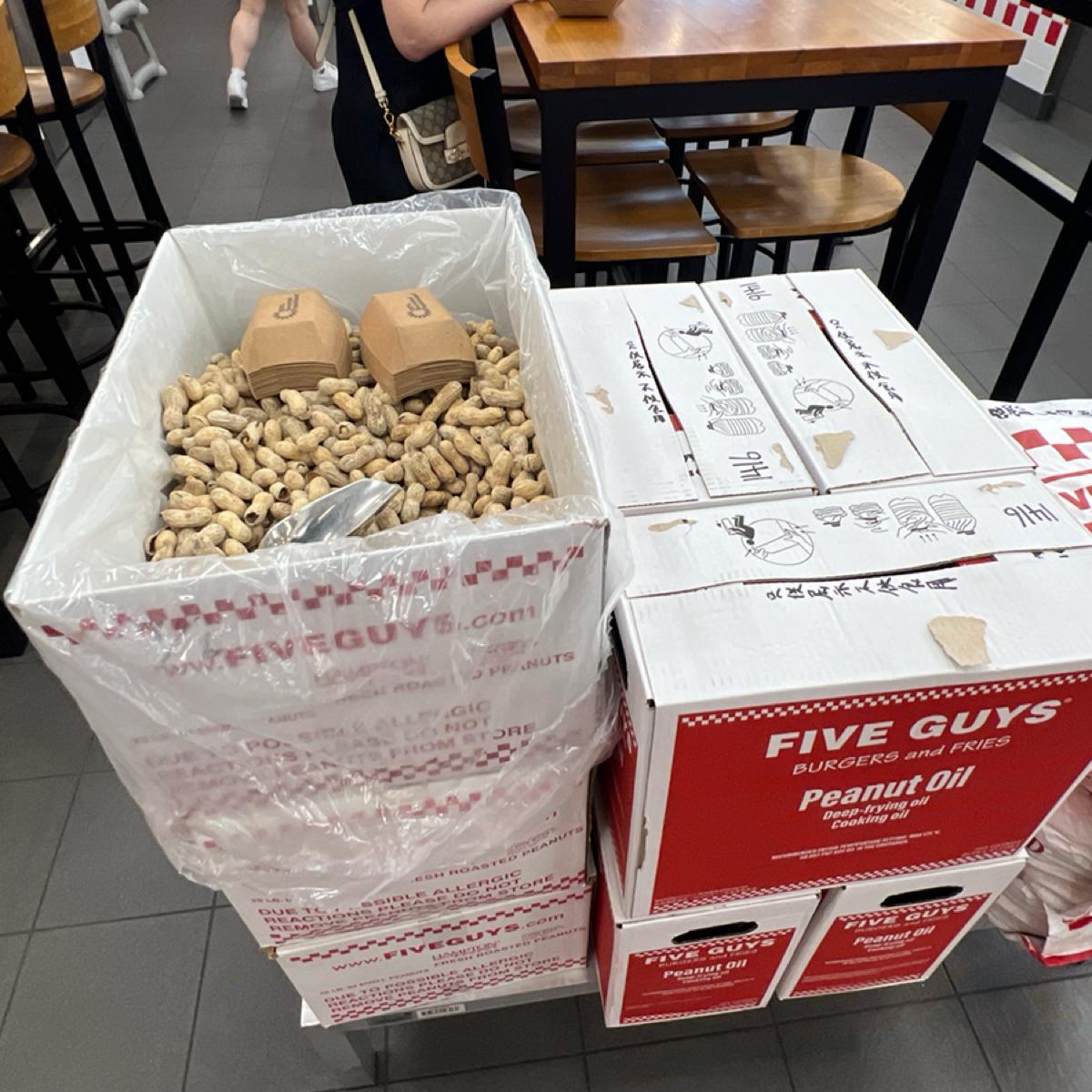 🥜 There was also a whole box of peanuts available for self-service in the restaurant, and many people were snacking on peanuts while waiting for their burgers. Overall, the environment was comfortable, and the atmosphere was on point, but the prices were quite painful to bear ❤️🩹. It's worth a visit for tourists to experience just once.