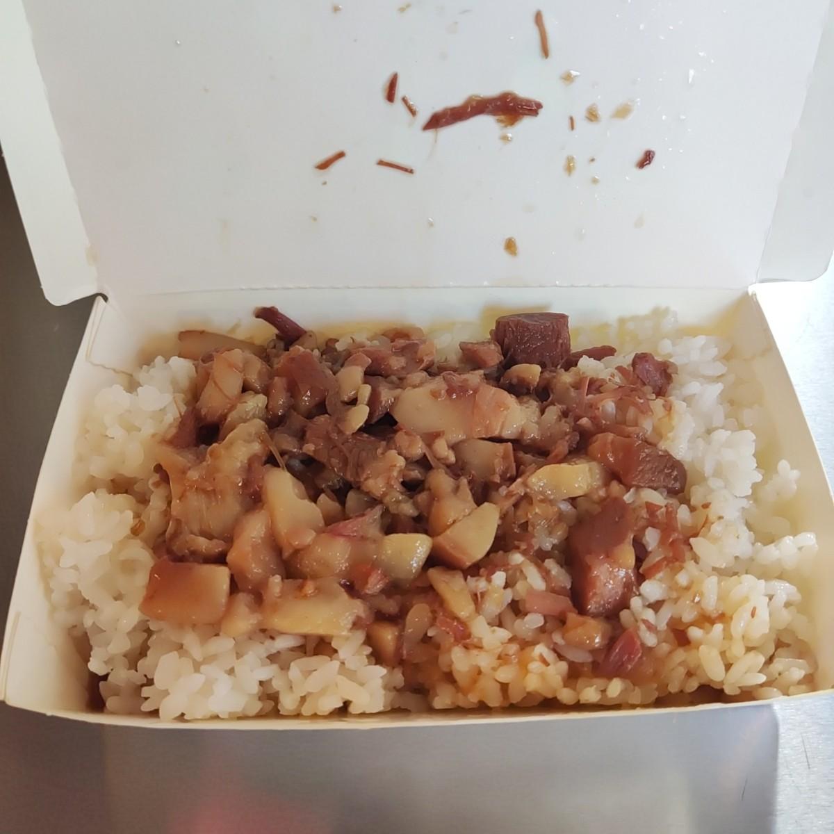 The chicken rice is chicken nuggets, not shredded chicken. The chicken tastes pretty good, not too spicy, and the chicken fat is quite fragrant.