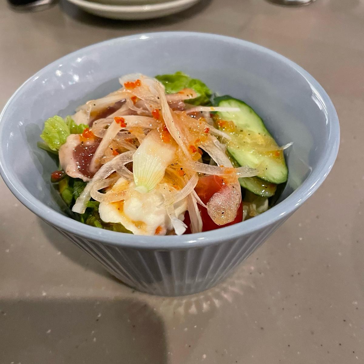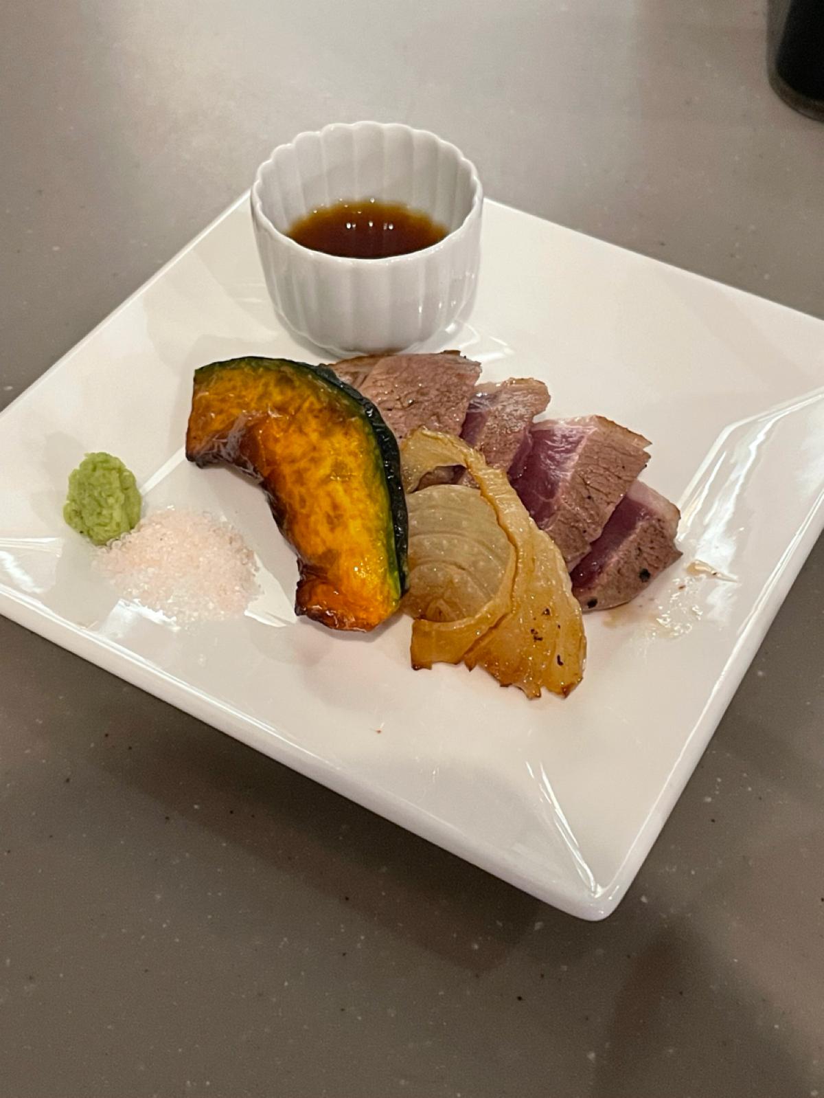 I don't quite know how to describe it; it felt like half-cooked, grilled or pan-fried duck. It had a nice chewiness and came with rose salt, green mustard, and mustard seeds that you could dip into. Each way of eating it was suitable and tasty.