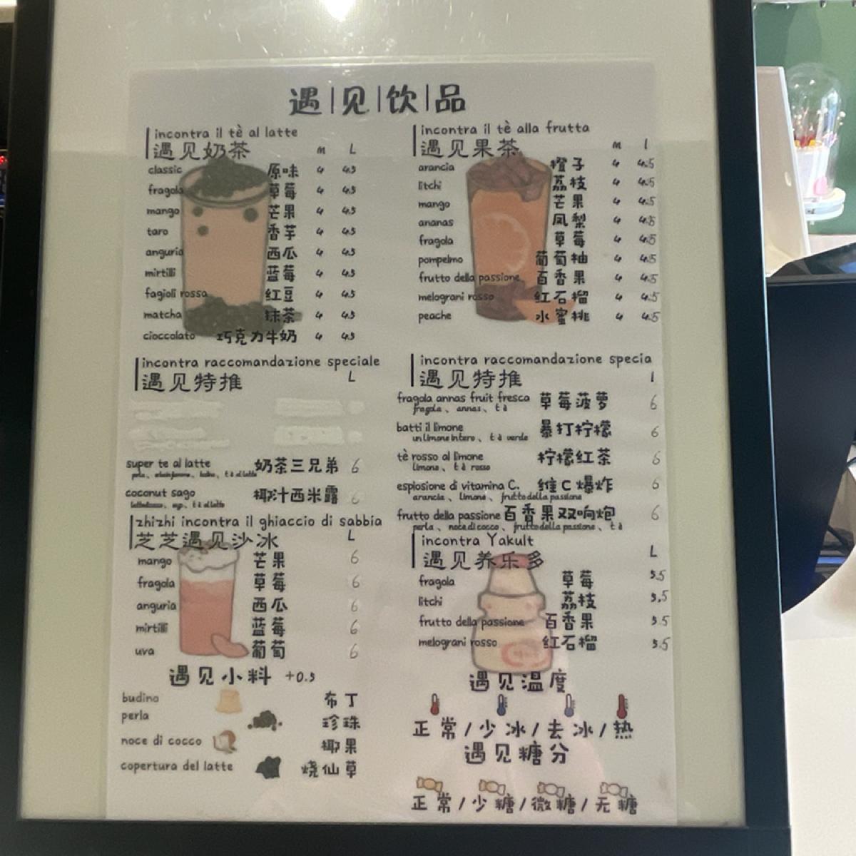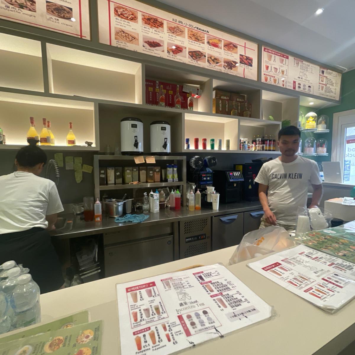 This "Meet Incontro Tea" is opened by a Chinese. In addition to selling drinks, it also sells some salty meals, such as spicy duck heads 😂