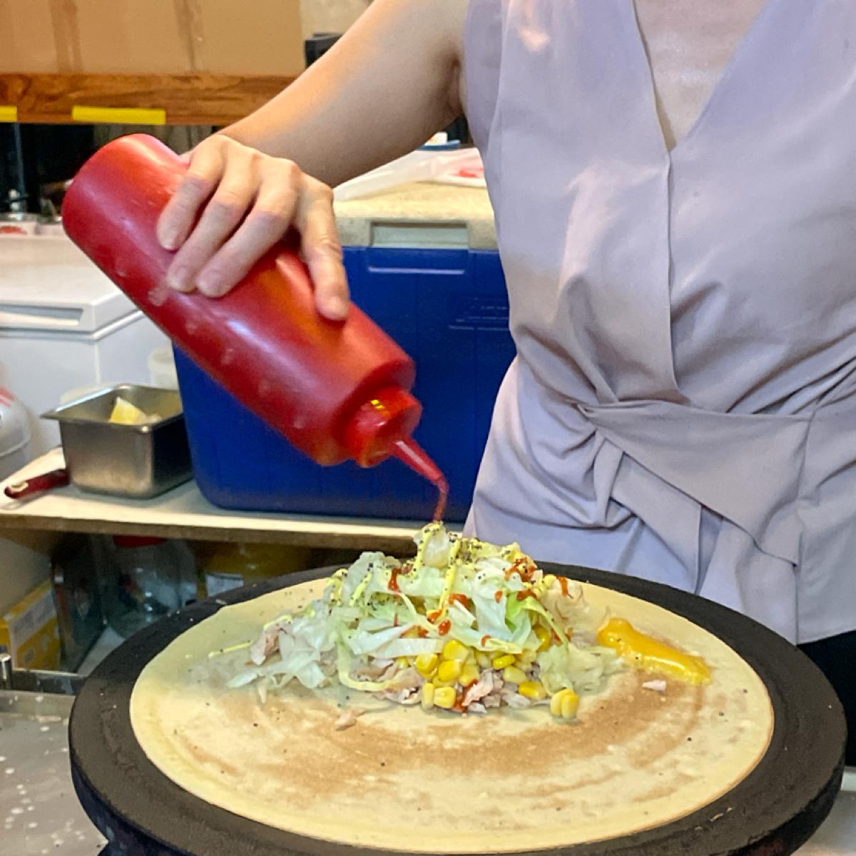 🔹 The crepe with rich fillings comes with a spoon! If you don’t have any, you can ask your boss for it.