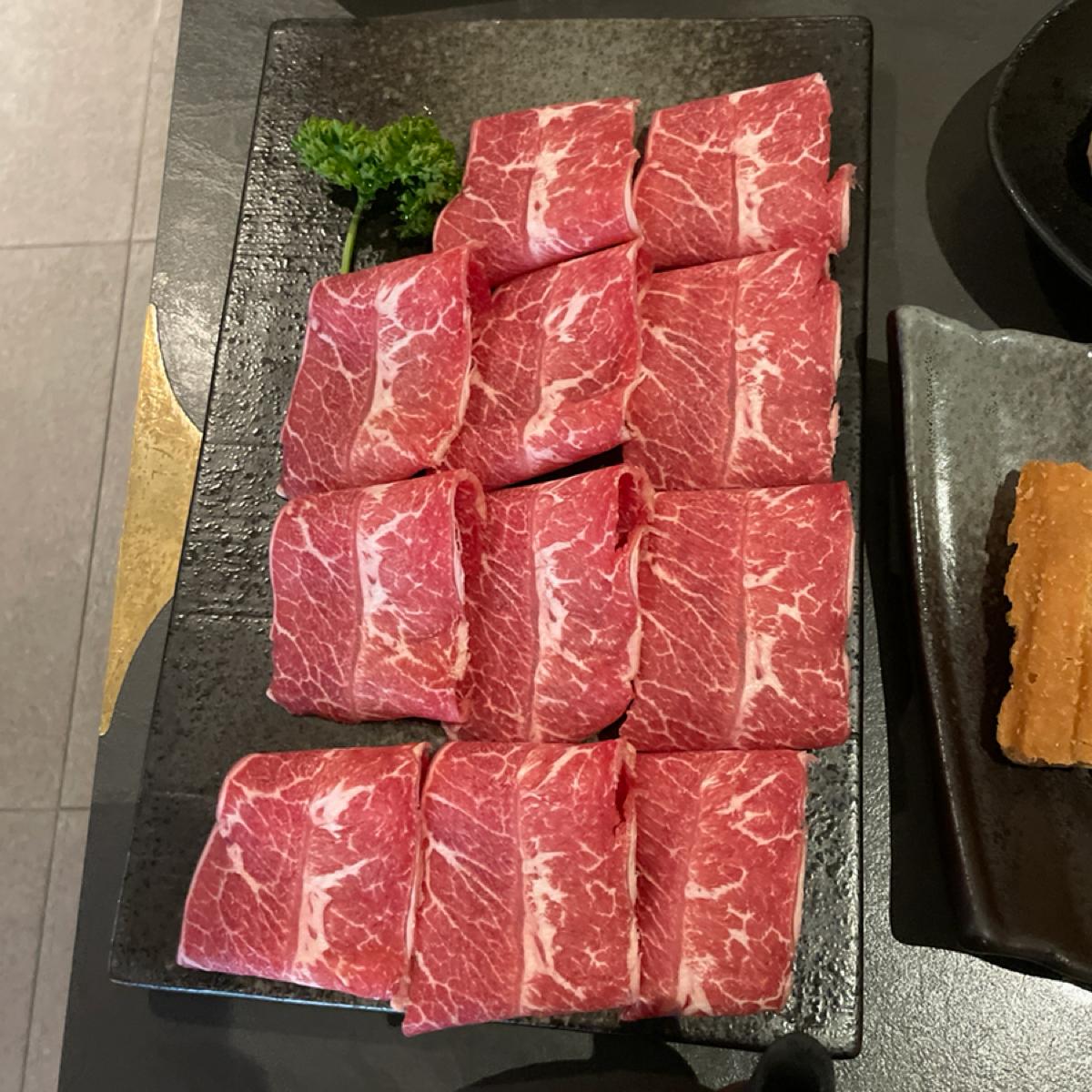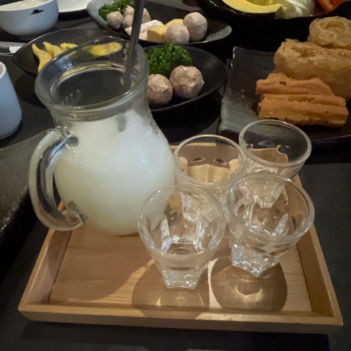 We ordered through a QR code, and there were set menus to choose from as well as a la carte options. We were four people and ordered a double set along with some additional dishes. They offer quite a few items that you can choose in different portion sizes, which is great to avoid ordering too much food. We selected the yin-yang hot pot with mild Chinese herbal spicy broth and a collagen calcium bone broth. The broth for the collagen pot was quite tasty, and the duck blood tofu in the spicy pot can be refilled for free. I personally found their duck blood to be very tender and quite delicious. The flame-seared pork seems to be their signature dish; it comes with sorghum wine, and the staff sets it on fire to let the pork soak in the wine before cooking, giving it a smoky flavor. If you’re concerned about the wine taste, you might want to cook it a bit longer. The other meats also seemed quite fresh; I particularly liked the beef, and the three-second ringing roll was also quite good. The complimentary dessert ice cream was rich, and the drinks were okay.