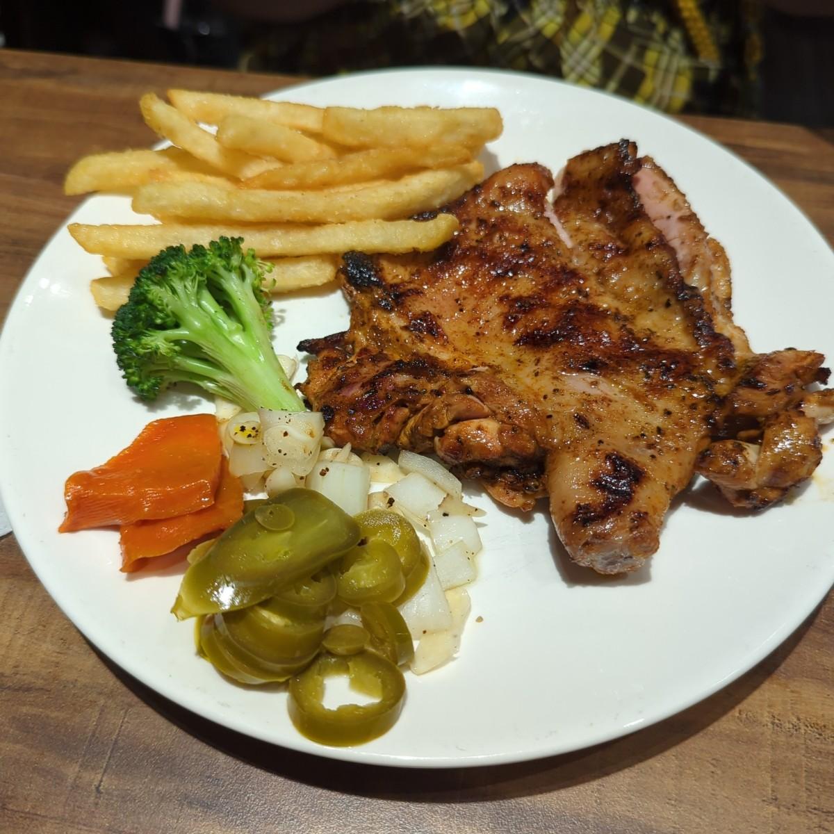 Great place that we somehow missed for so long. No fuss grilled steak shop where we always order pork chops and grilled chicken thigh (it's got a bit of a kick). Set comes with fries, broccoli, dinner rolls that are filled with a sweet butter and corn chowder, and a drink. I like to get sparkling water from the fountain and mix with apple juice. Quality of good is great, tender chicken, tender pork chop, great for low carb too, if you don't go for the sides of course. Anyway, glad to have found this place, we will likely visit often.