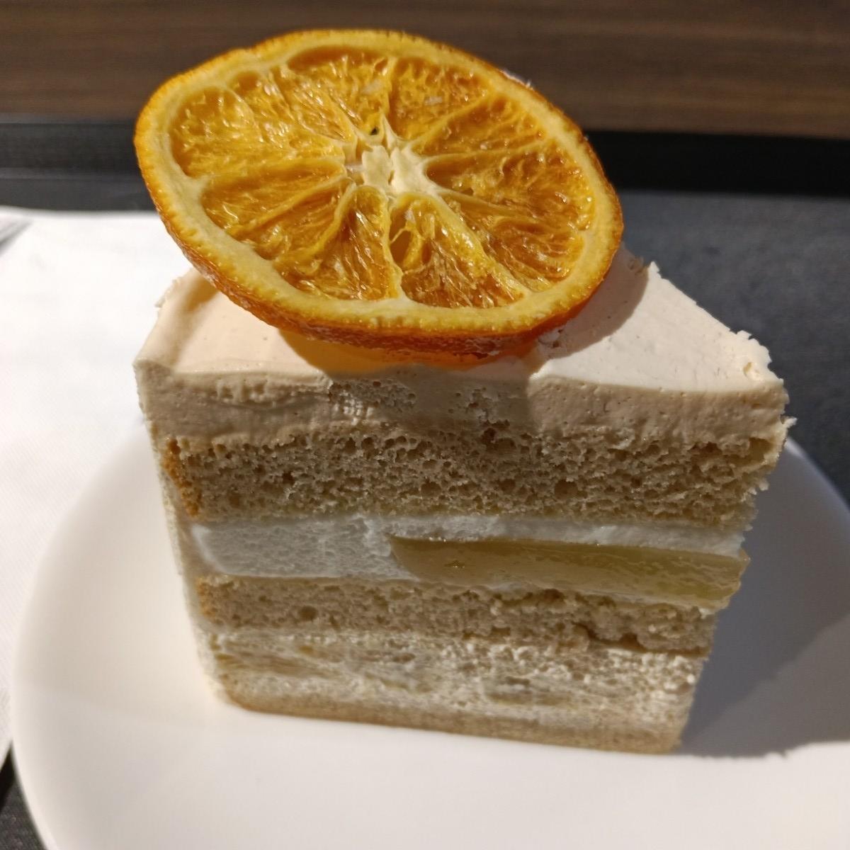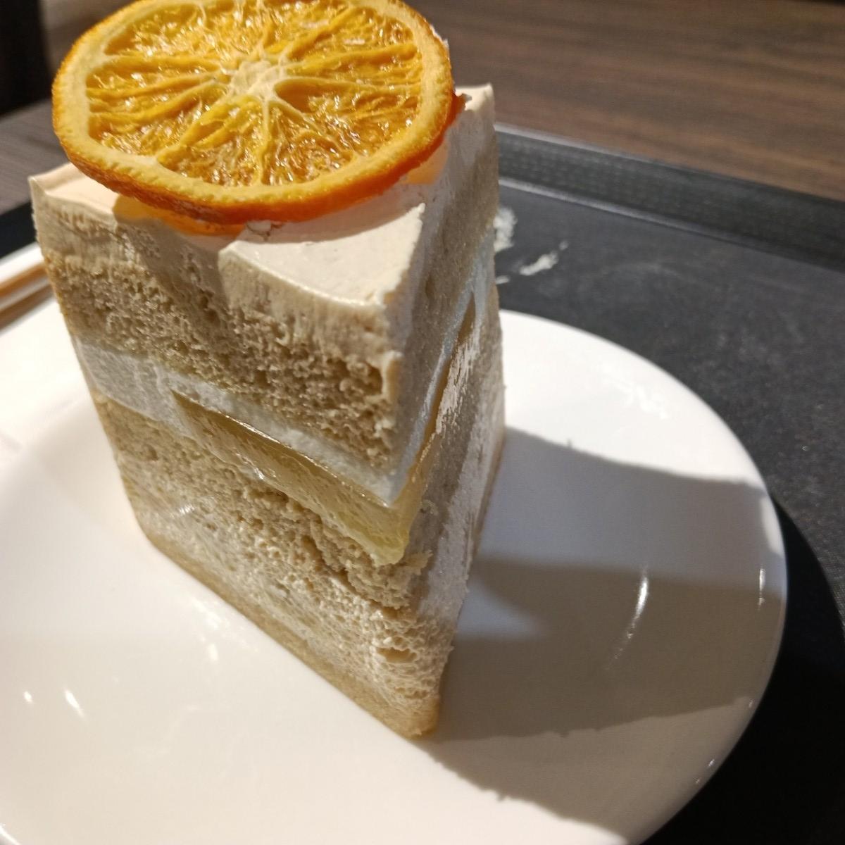 When I took a bite of the top layer, it felt like the cream had a hint of citrus acidity. The cake was soft, and the orange jelly in the middle was absolutely delightful!
