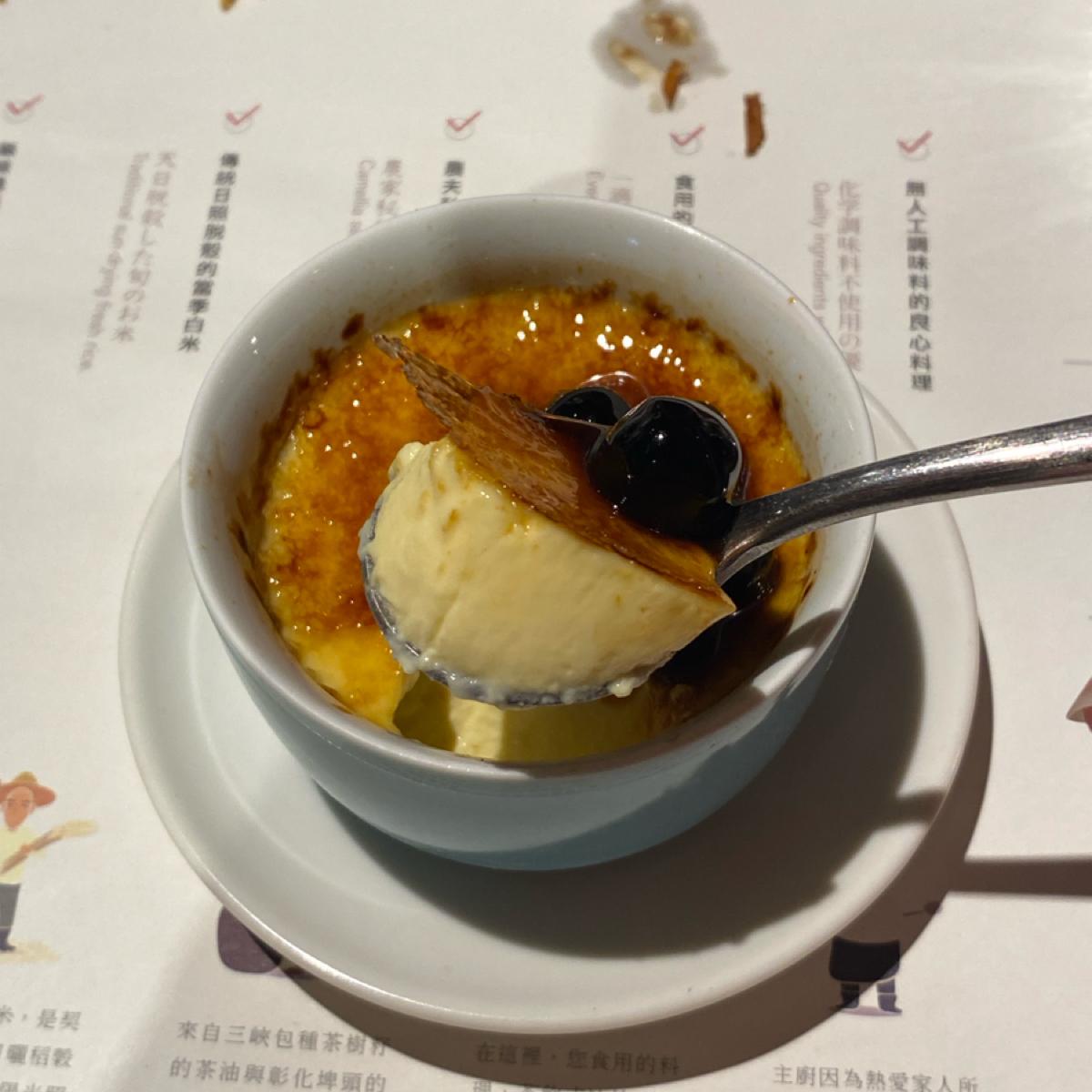 The pearls tasted just as good as in the drink. The caramel layer on top of the crème brûlée was excellent, complementing the creamy texture of the brûlée itself, with a strong vanilla flavor and just the right egg fragrance — delicious!