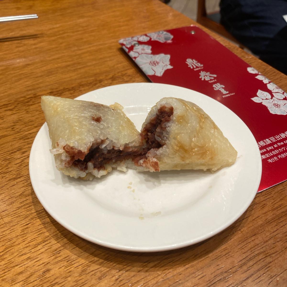 It tastes pretty good, with glutinous rice on the outside and red bean paste on the inside.