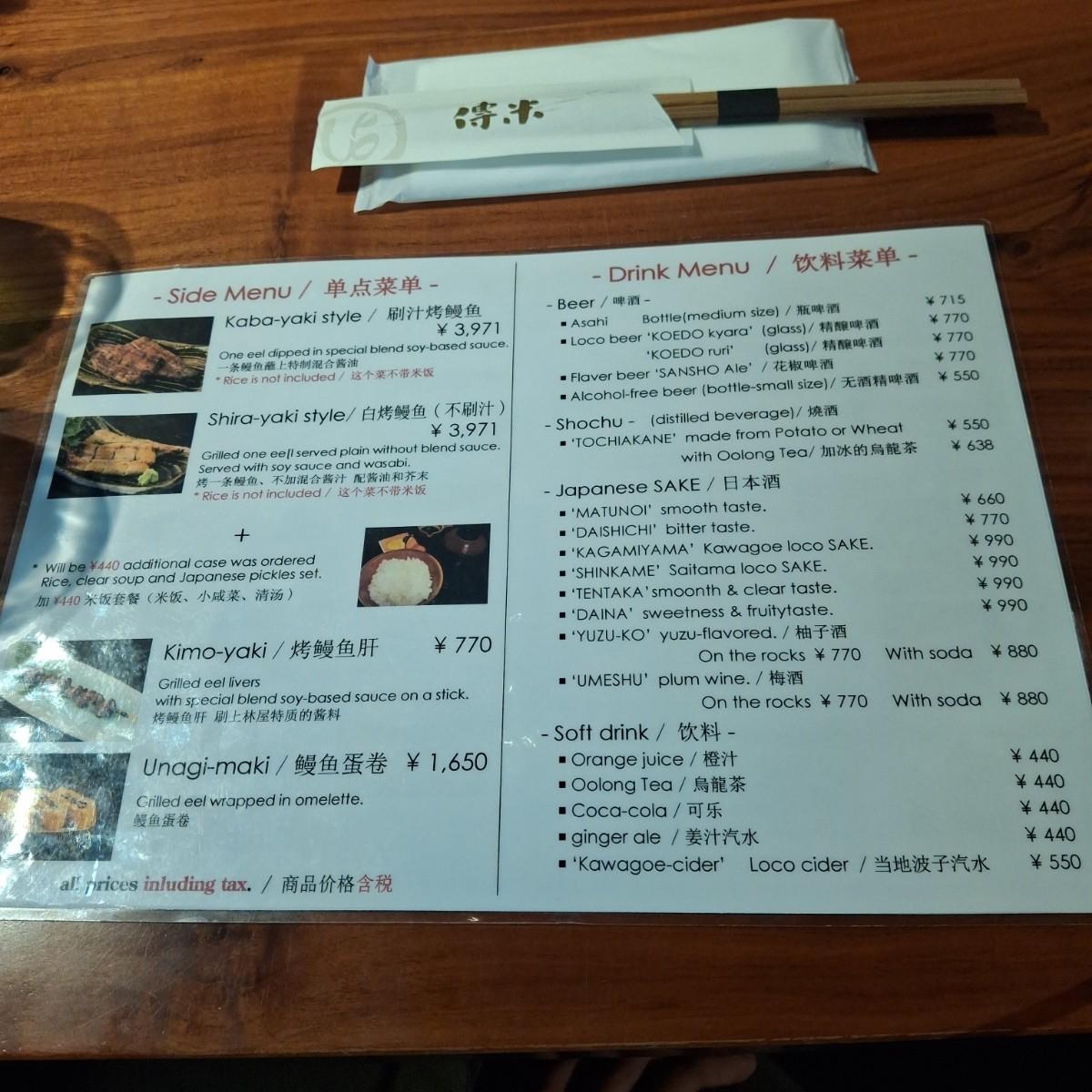 "This price is what I ordered, because I don't know what others ordered 😂" by the person who almost couldn't eat eel rice after arriving in Kawagoe.
