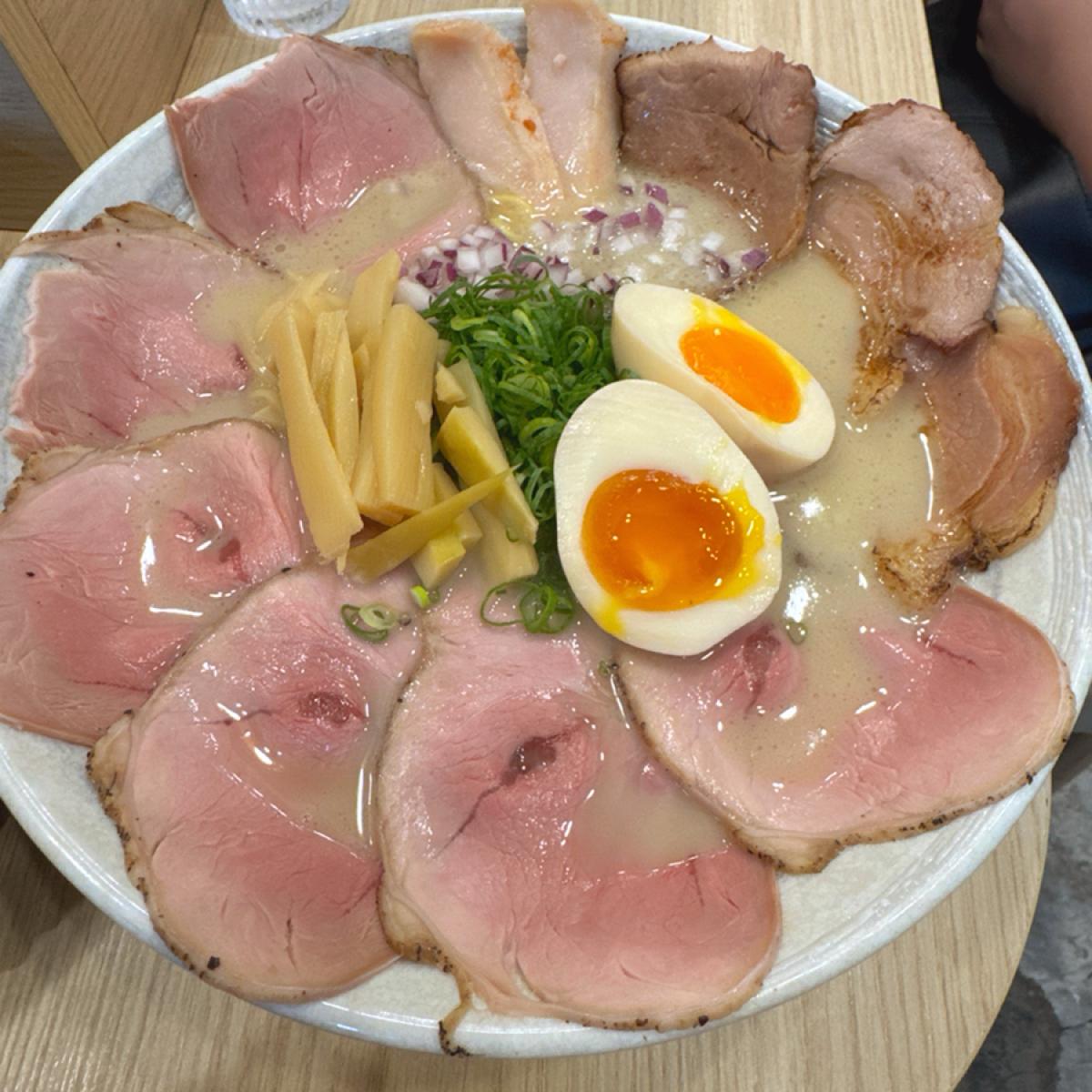 As a meat lover, how could I not order the meat lover's version? 😁 When it arrived, the amount of meat was super satisfying 🤩 The char siu in the restaurant was plentiful; the chicken char siu was incredibly tender, the seared char siu was very fragrant, and the sous-vide char siu had the most portion. Although it was tender, I still preferred the seared aroma. I hope the owner could offer a fully seared version 😁 The broth is rich and not overly salty; for soup lovers, you can choose a light or normal flavor to truly enjoy this rich pork bone soup.