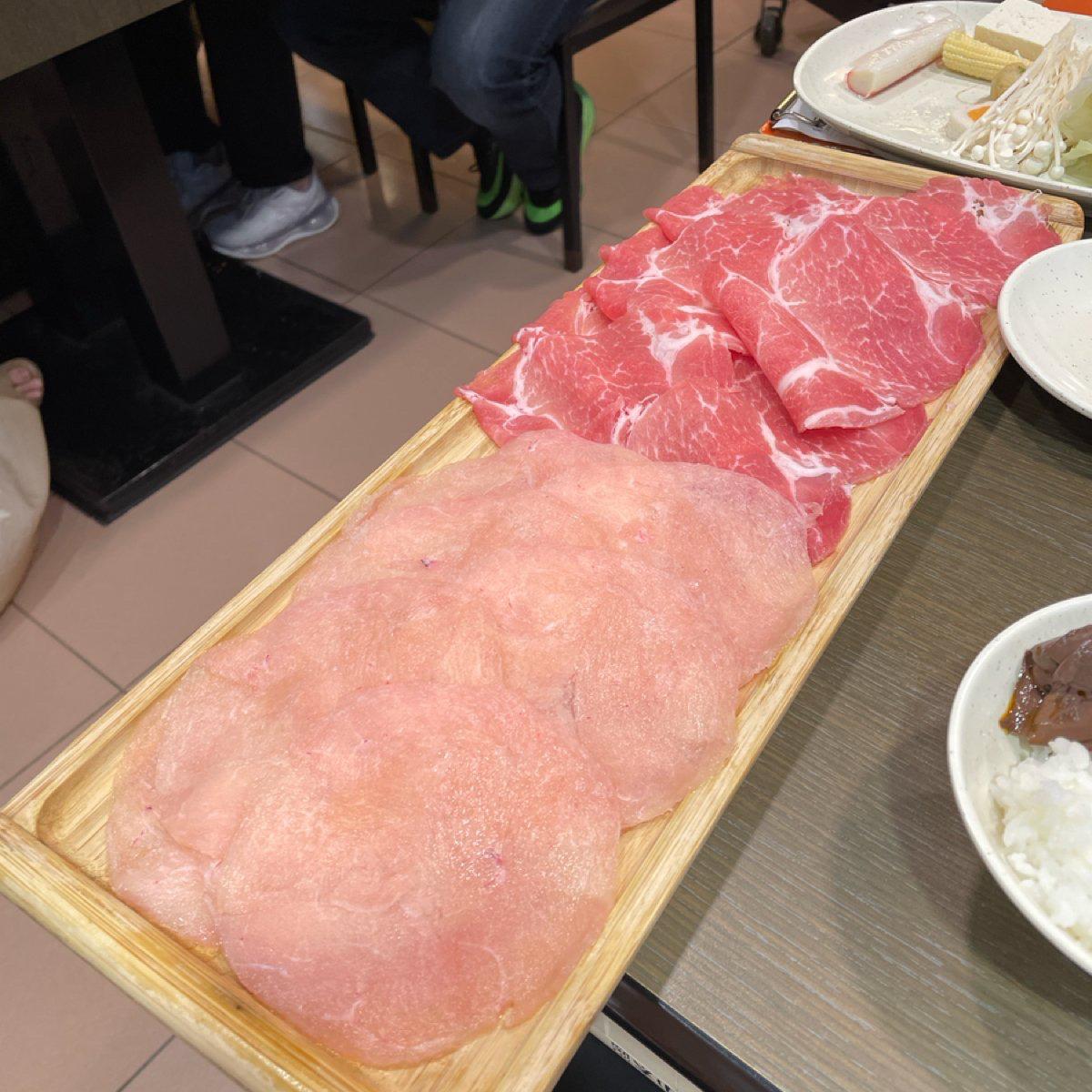 My companion chose the meat-based large-mouth meat pot for NT$429, which came with a 16-ounce chicken and pig platter + a side dish. The dish did not include taro, shrimp, tomatoes and other hot pot ingredients, and there were a lot less dishes.