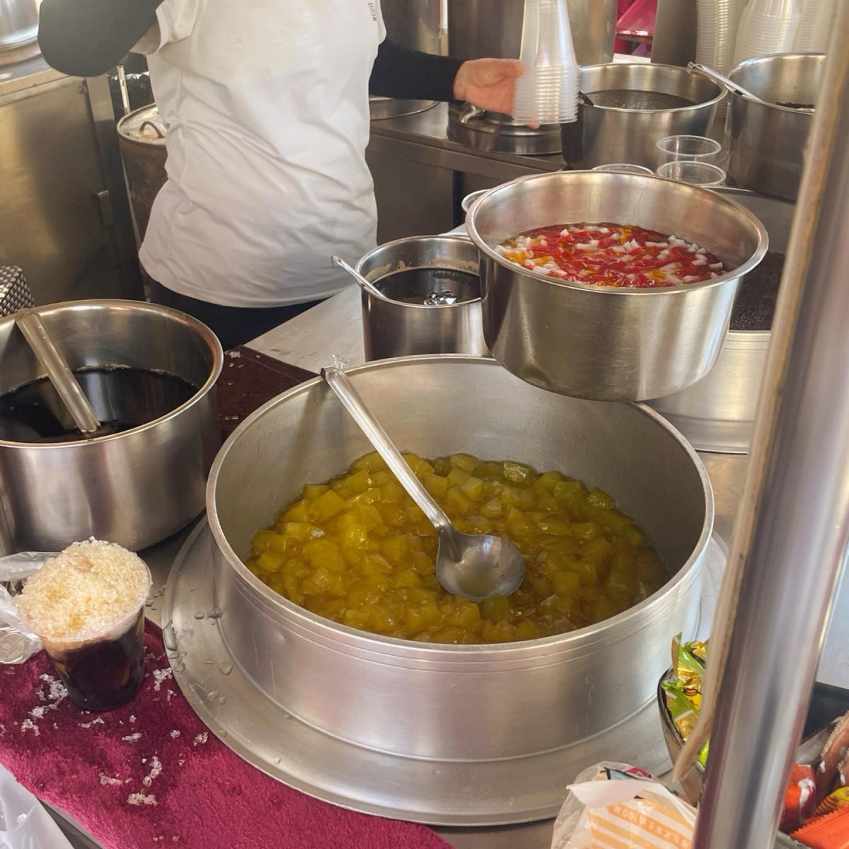 Tapioca balls / Sweet potato balls / Coconut jelly / Plum / Mountain tapioca balls / Mung beans / Grass jelly