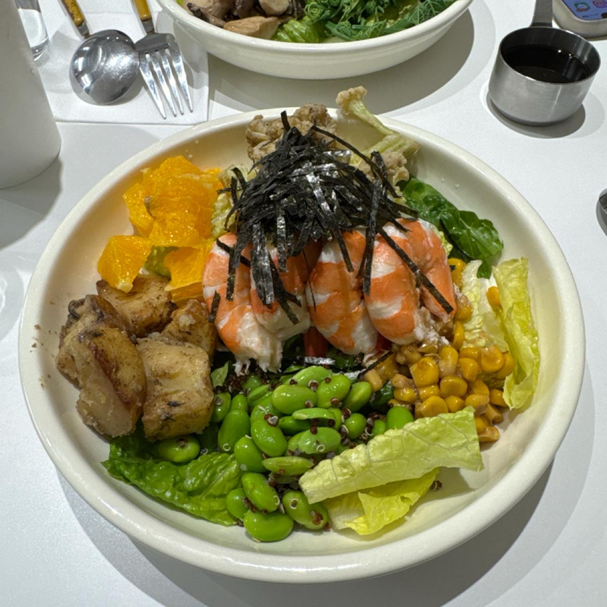 Like other poke salad bowls, you can mix it as you like, or you can order a set meal prepared by the store! This time it was a free mix. I chose drunken lemon shrimp as protein. It has a solid texture and special seasoning, but the lemon flavor is stronger than expected, which is not to my taste~