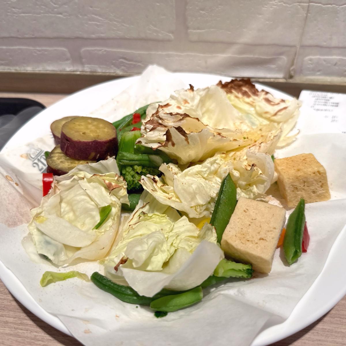 The warm salad was relatively good, and the cabbage was burnt black, which made it not look very good.