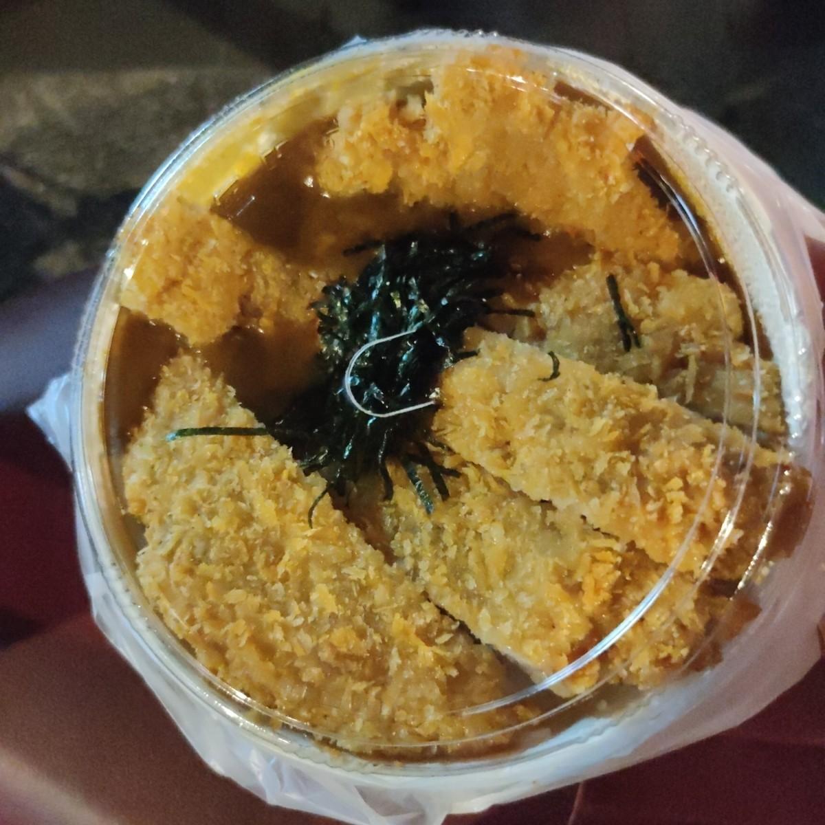 I chose takeout today (pork chop curry) and picked up the lunch box, which was super heavy. I was very surprised when I took it home and weighed it at about 782g including the lid. It was indeed very filling. The meat was tender, firm and flavorful. The pork chop was huge, personally. It feels to be about 15~20cm long and about 1cm thick. The flour coating is not thick, and the rice grains are distinct. The side dishes include carrots, green cauliflower, and garnished shredded seaweed. It is definitely filling and not expensive.