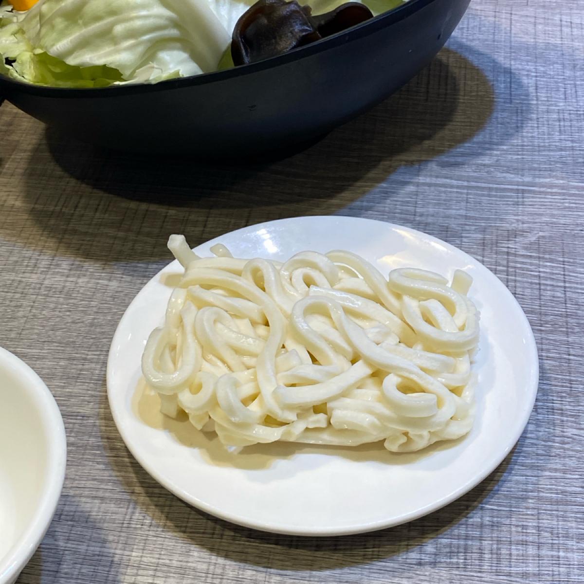 The side dishes were normal, but the udon noodles that were served looked very cute, almost like a model. The vegetable platter had purple sweet potatoes, which was unique, and the quantity of vegetables was reasonable. The pepper pork broth had enough pepper flavor, and the cooked dishes were tasty. I must strongly praise their spicy hot pot broth! My friend and I both loved it! Everything cooked in it turned out delicious, making it quite a memorable spicy hot pot. I recommend it for those who love spicy food!