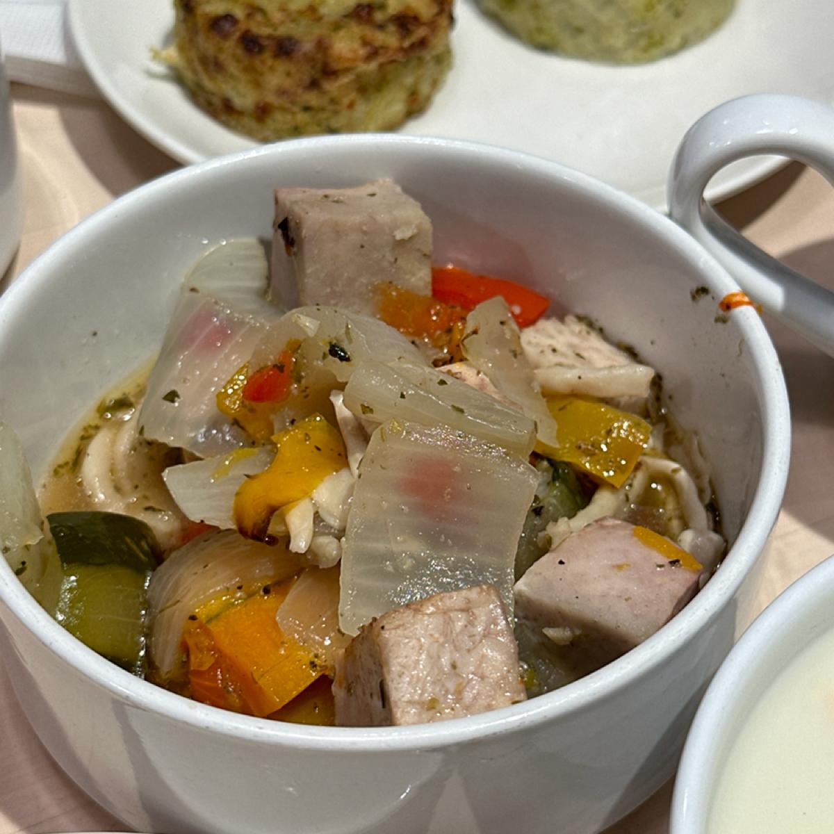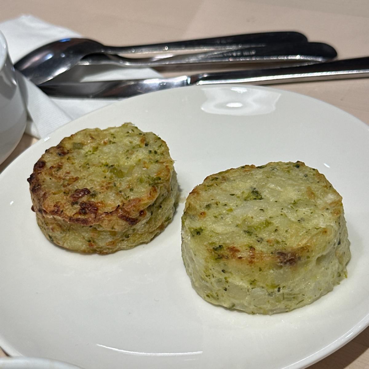 This is also placed in the same area as the chicken wings and is available for self-service. This meal is also ranked in the top two of my favorite dishes. I must eat the vegetable potato pancakes every time I come here. It contains cauliflower, leeks, onions and cheese. In addition, the mashed potatoes are fried into round hash browns. It tastes a lot like hash browns but with more vegetable flavor in it, and it is not as oily as ordinary hash browns. I personally like this texture very much. It can be enjoyed as a staple food on its own instead of rice or noodles!