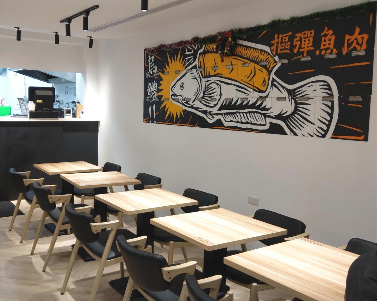 The main branch of Xiao Zheng Tai Sauerkraut Fish is located in the alleyways of the Daan District in Taipei City, with the nearest MRT station being Zhongxiao Dunhua Station, Exit 3, about a four-minute walk away. The décor inside is simple, mainly in black and white, with many illustrations on the walls, and the arrangement of tables and chairs is slightly crowded.