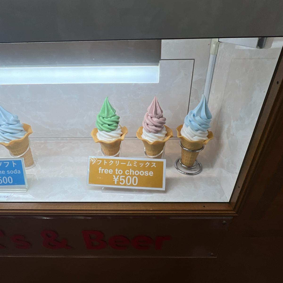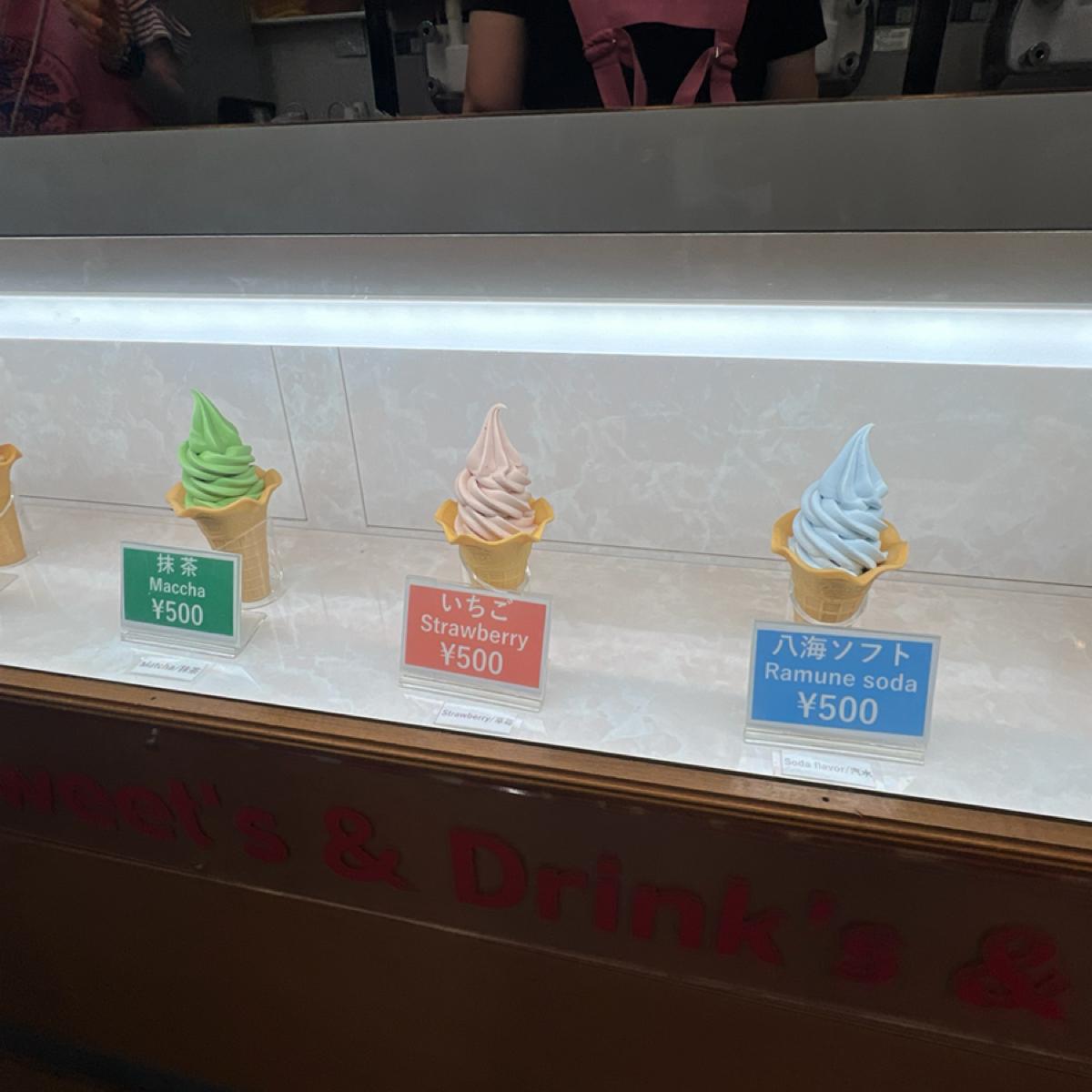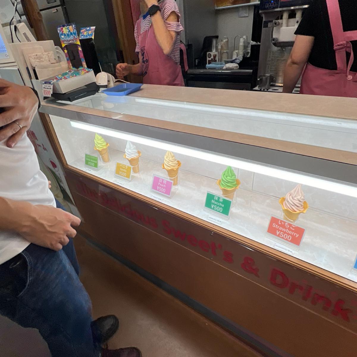 In the middle of Oshino Hakkai, souvenirs of all sizes are sold, as well as some famous local fruits. This review will focus on the ice cream sold in this store.