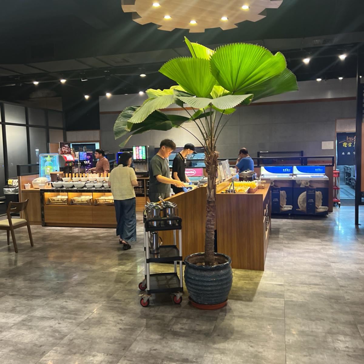 The restaurant offers a self-service bar with fresh and clean vegetables, noodles, braised pork rice, drinks, and ice cream available for self-service. Fruits and desserts need to be ordered via QR code, and the fruit is a mixed platter without options to choose, which is a bit inconvenient compared to the Taipei store where you can pick your own.