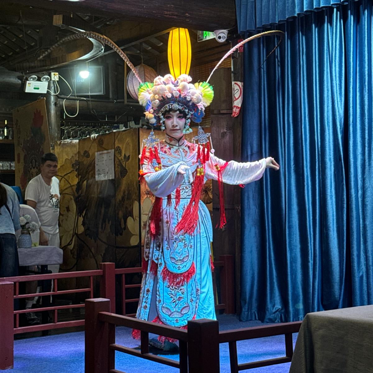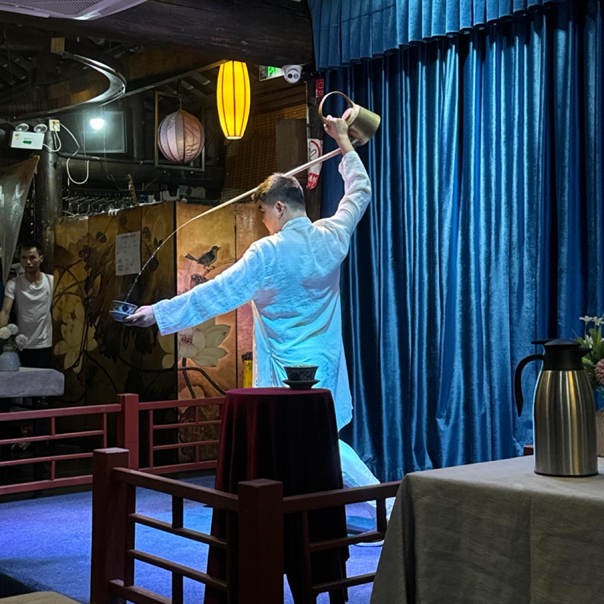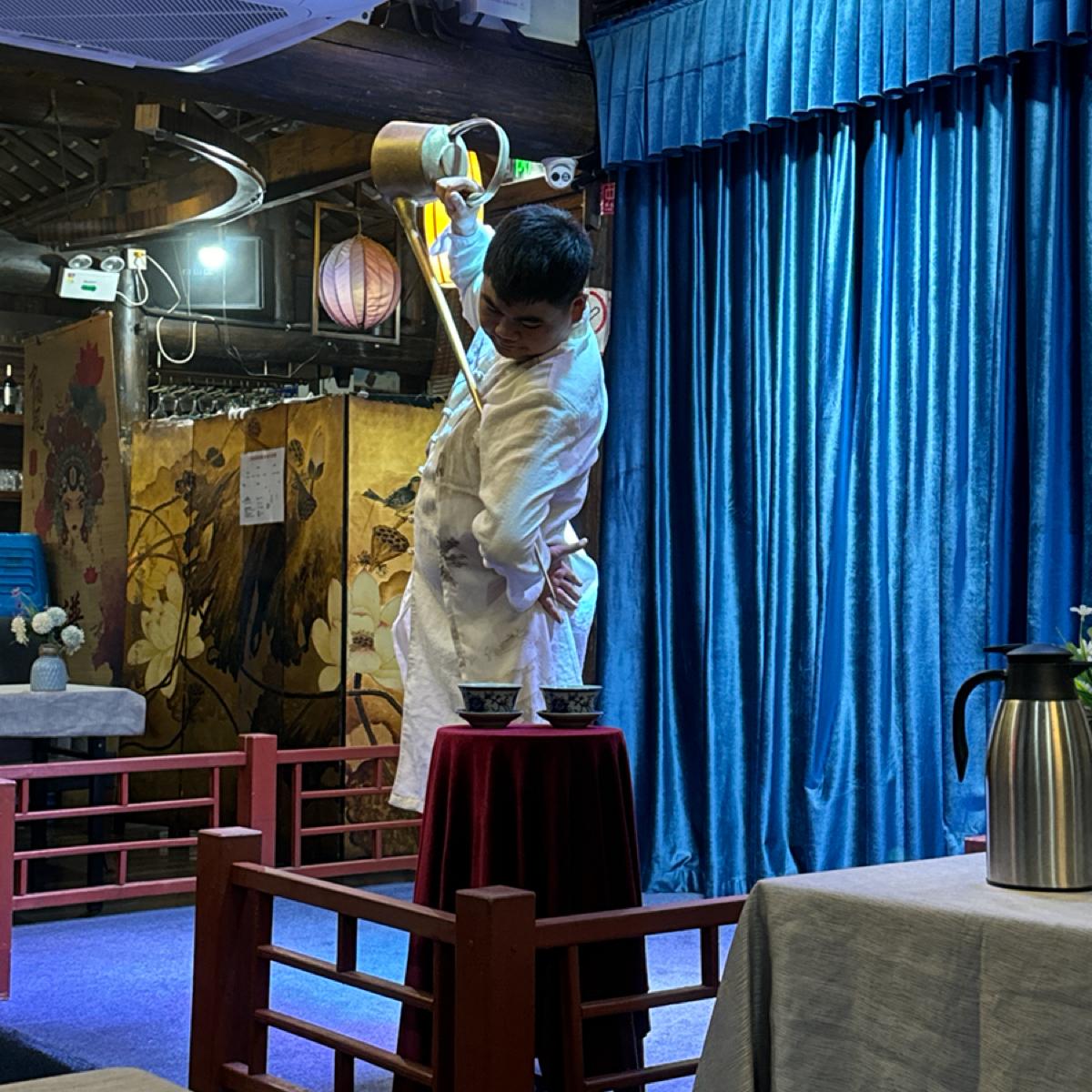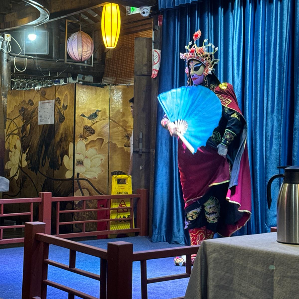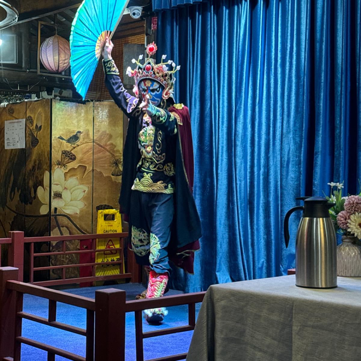 Although each of the three performances isn't very long, totaling about 20 minutes, they are vibrant and colorful, with elements of both mountains and water. The teapot man will personally come down to refill your cup, and the girl from the Sichuan opera is beautiful, with long whiskers that almost touch the air conditioning unit on the ceiling.