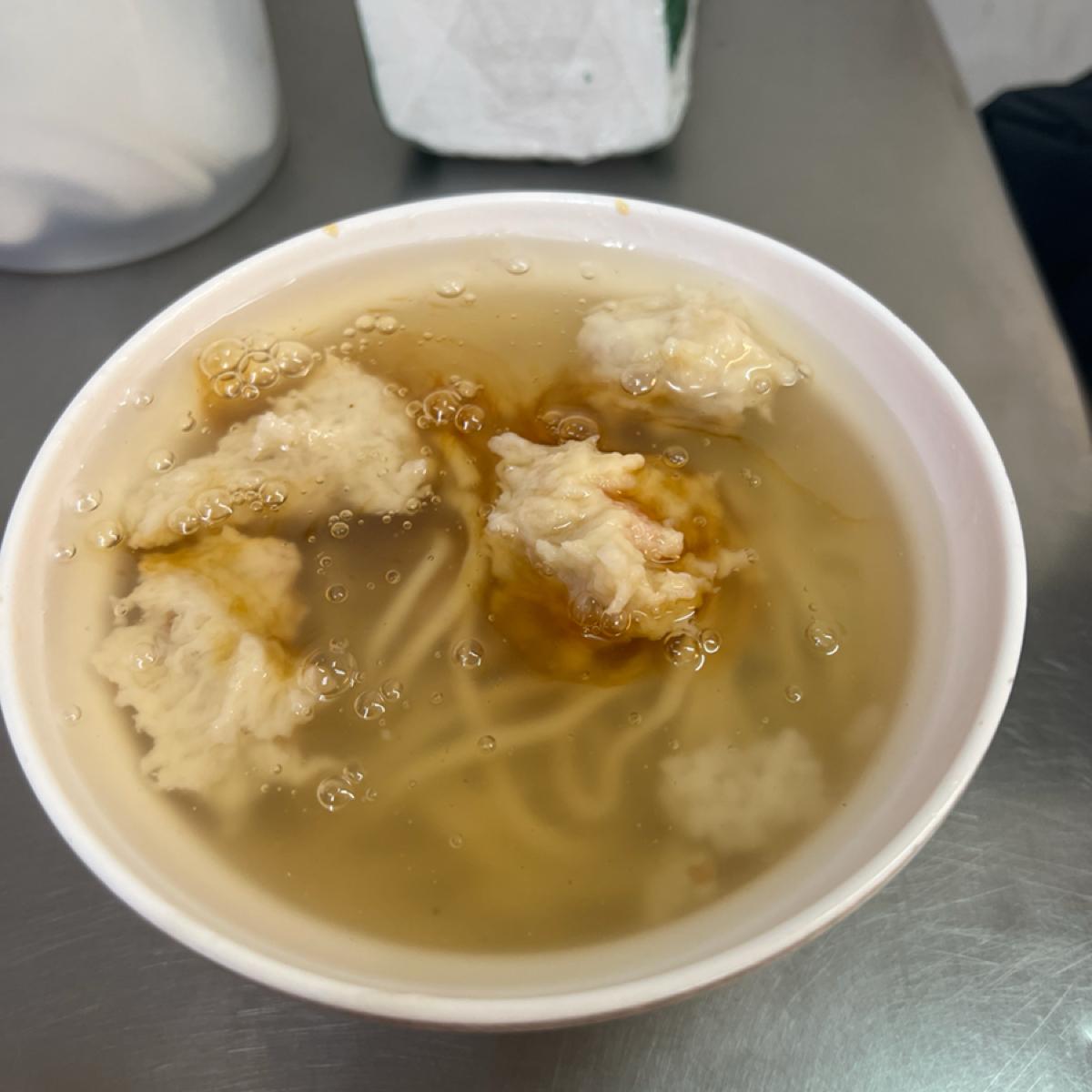 The shrimp soup noodle broth is sweet, and the shrimp itself is Q (springy) and delicious, but the noodles are a bit bland on their own; it’s recommended to mix them with the broth for more flavor. The fish crack soup has a generous dollop of satay sauce added on top, giving it a rich flavor that's not overwhelming.