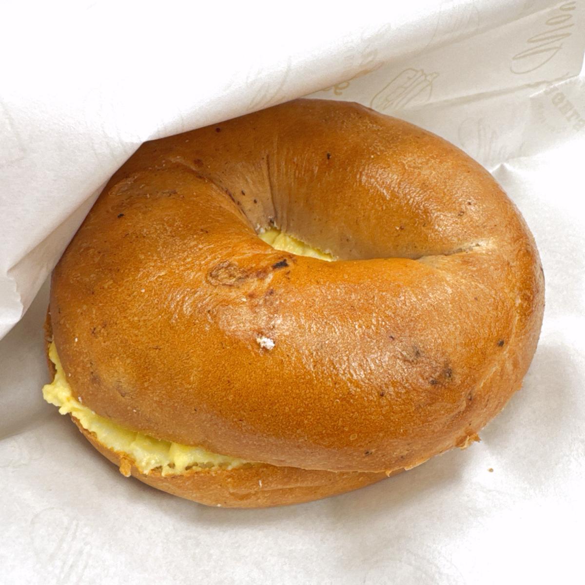 In August, there is a promotion where you can add an egg salad bagel for $49 with the purchase of a main dish. I had never tried the bagel from Woopen, so I decided to add it to see how it tastes. It’s a blueberry bagel filled with a thin layer of egg salad. The egg salad is creamy, but there isn’t much of it 🥺. The bagel's texture isn’t very crispy; it feels quite soft, which I personally don’t prefer.