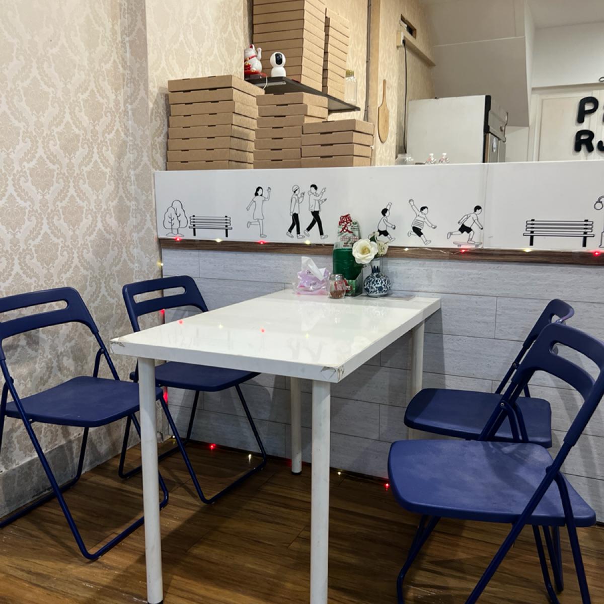 The interior of Pizza Slice exudes a tantalizing blend of styles, with sleek, modern decor complemented by subtle nods to Japanese aesthetics. Wooden accents, minimalist furnishings, and a soothing color palette create a warm and inviting atmosphere, setting the stage for an unforgettable dining experience. The music with chilling vibes from two giant speakers hanging on walls’ corners like murals above those wooden couches surely mesmerizes diners.