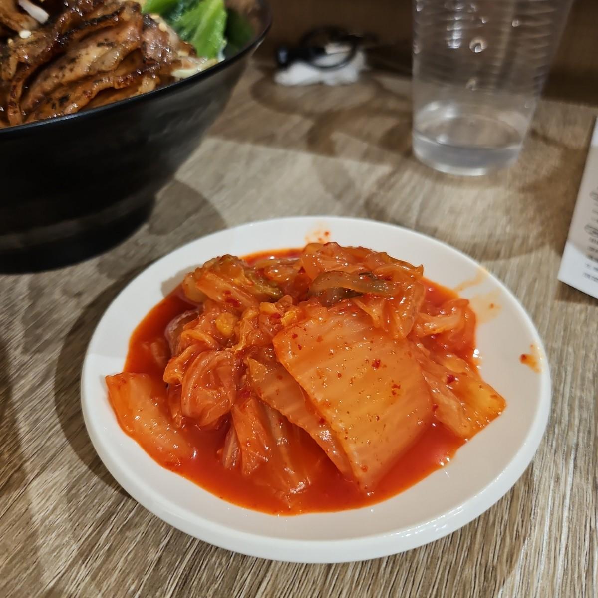 The kimchi is a bit sour, but it goes well with rice! This is the first time in my life that I encountered a donburi restaurant where part of the portion can be replaced with shredded cabbage. I just opened it up and ate it up without any burden🩷