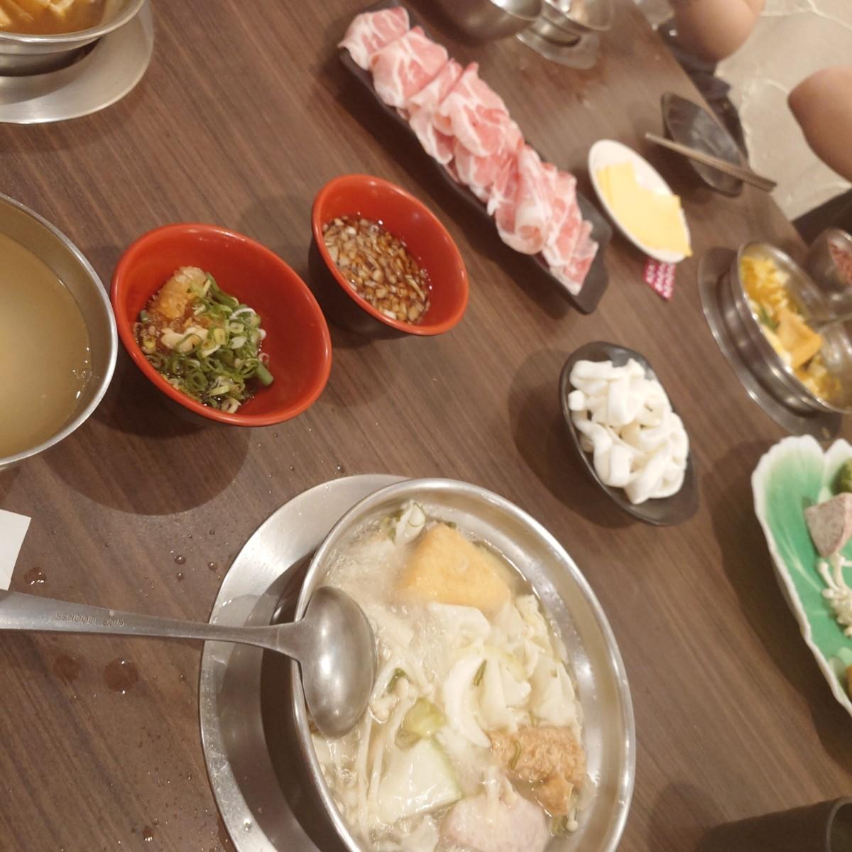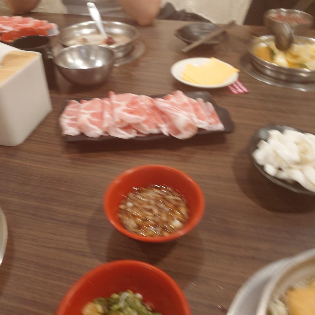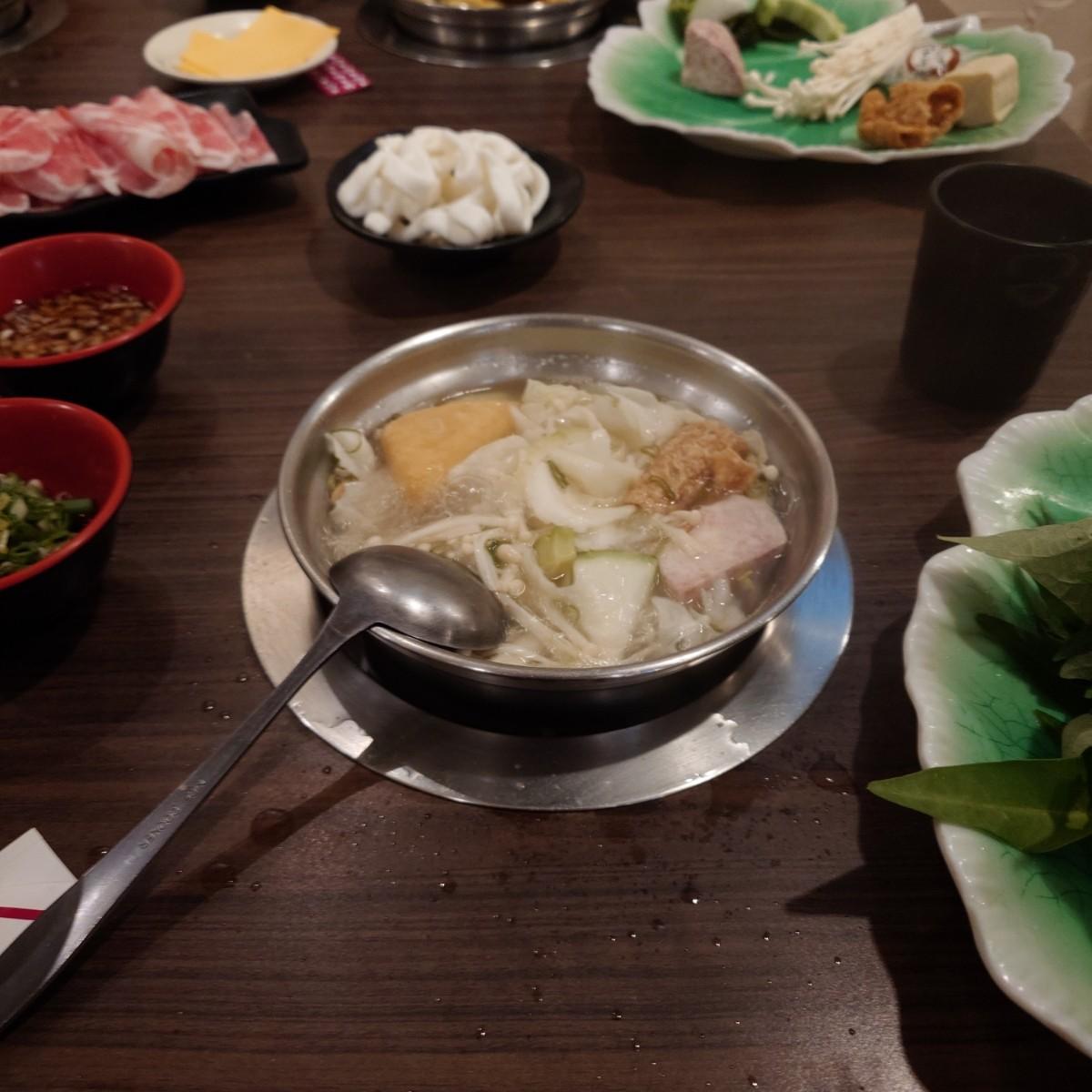 The highlight is the vegetable platter, filled to the brim with greens, including occasional water spinach and sweet potato leaves... among other special vegetables. Cabbage is a must! There aren't many hot pot ingredients inside, but you will find basic items like rice blood cake, meatballs, and some unknown ball (cheese? I didn't eat it so I don’t know XD), taro, triangle tofu, tofu skin, and board tofu... plus they will give you a slice of sweet potato and a stuffed mochi at the end (I hate peanuts and have encountered them three times already…).