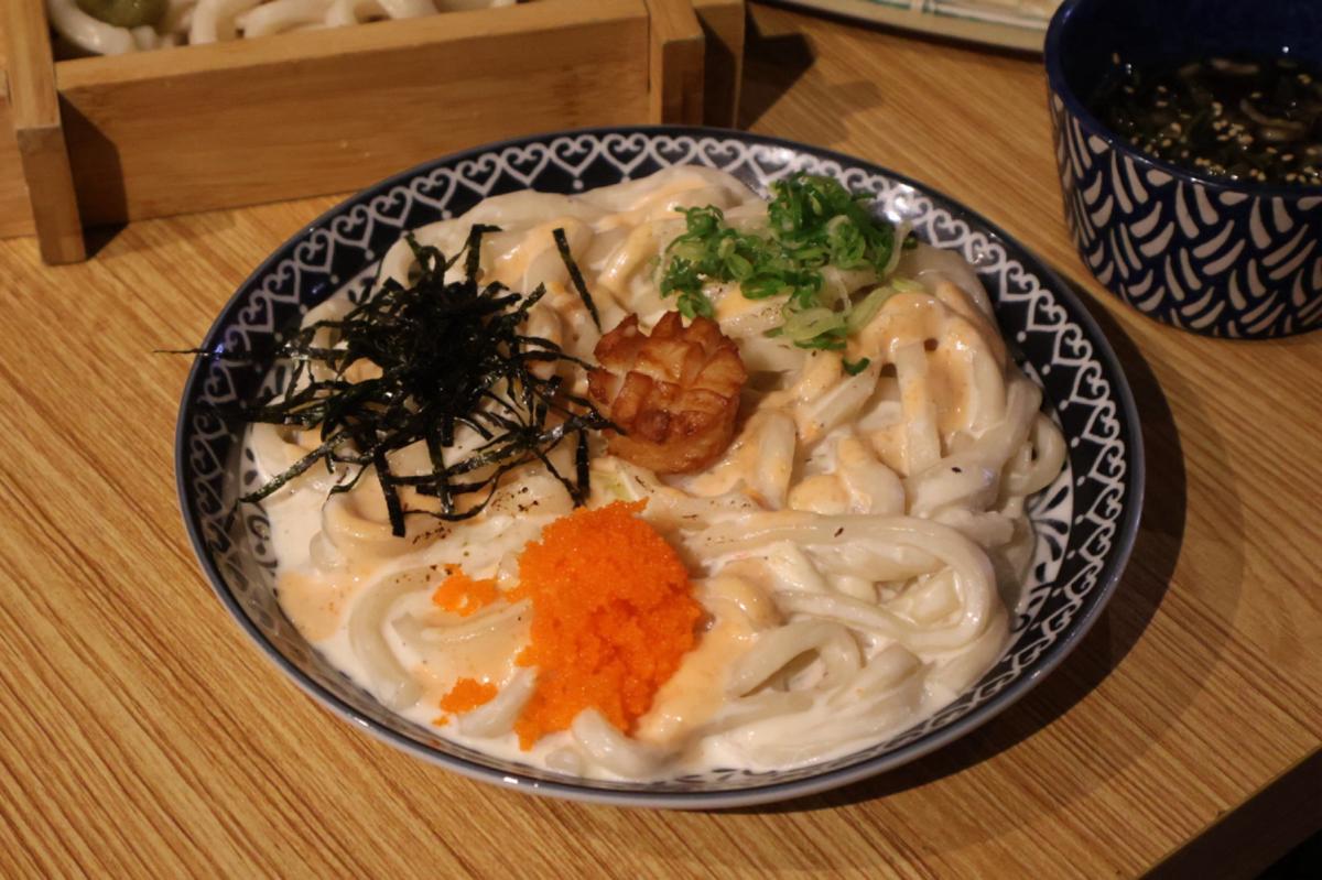 · This udon looks exceptionally delicious. At first glance, one might think it would just have a simple white sauce flavor and be quite plain.