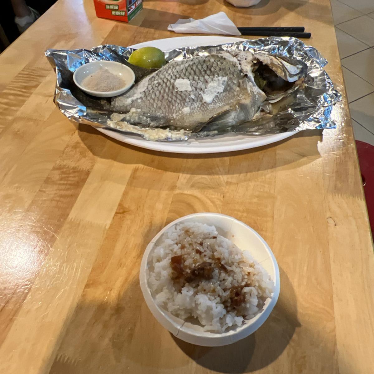 Their ordering method is a bit special; you can't order dishes individually; everything is sold as a set meal for two people at 800 NT dollars. The set includes grilled fish, side dishes, soup, and dessert, and the portions are quite large. Additionally, there is unlimited white rice and braised sauce available for self-service. We ordered the two-person set, and the two of us were very full, even a bit overstuffed. The grilled fish as the main dish was very tender, but I felt that the salt flavor could be a bit stronger to better bring out the fish's aroma; the sweetness of the fish also needs salt to enhance it, as it tasted a bit bland.