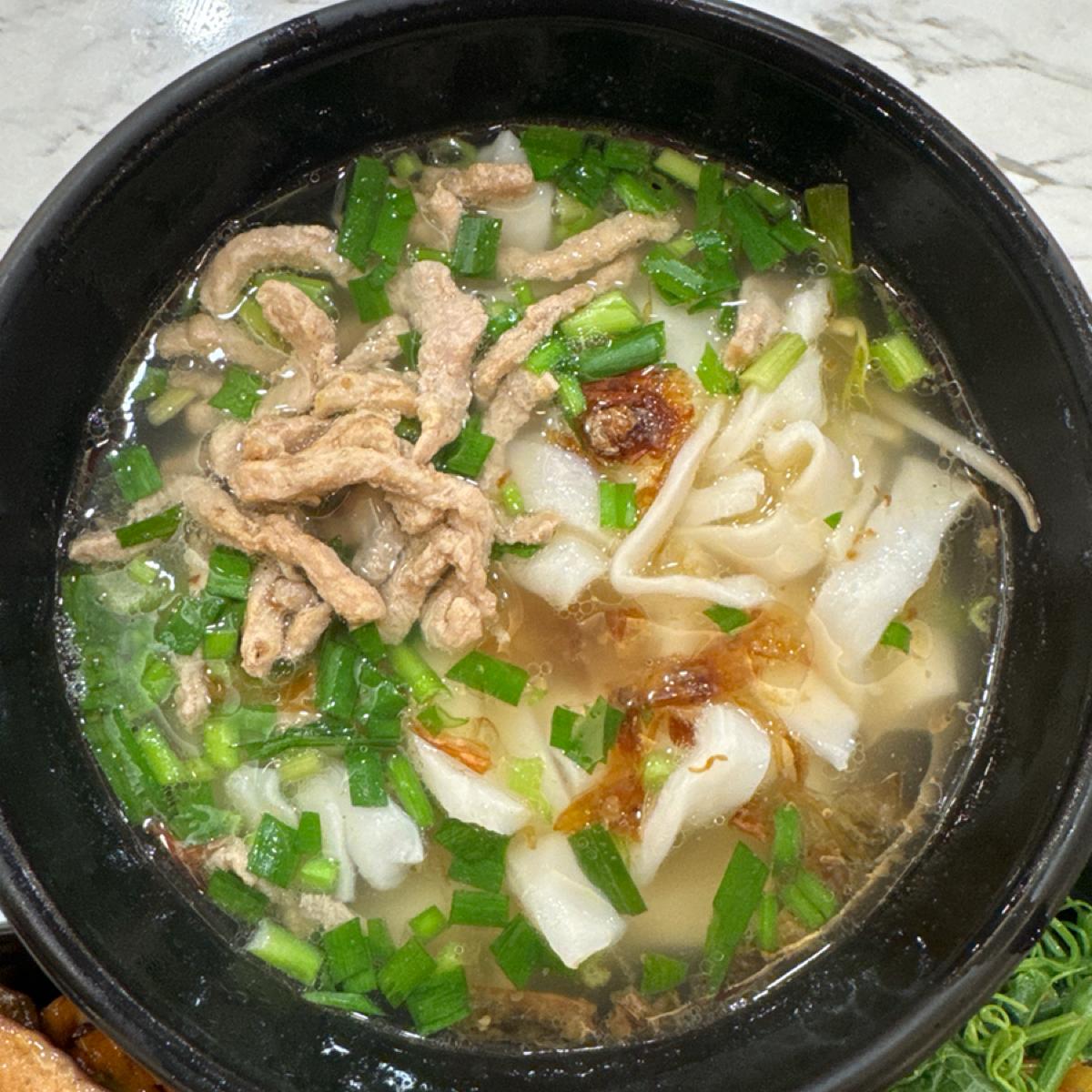 Now moving on to the main dishes, we ordered flat rice noodles with shredded mushroom and pork as well as the signature dumplings, both using the same broth (similar to the broth used for Hakka savory dumplings). The flat noodles and dumplings have a standard texture that is generally tasty, requiring no additional commentary. The shredded pork is savory with a bit of texture, definitely not bland or mushy. Each bite of the main dish accompanied by a spoonful of warm soup (and a big portion of chives) is quite enjoyable.