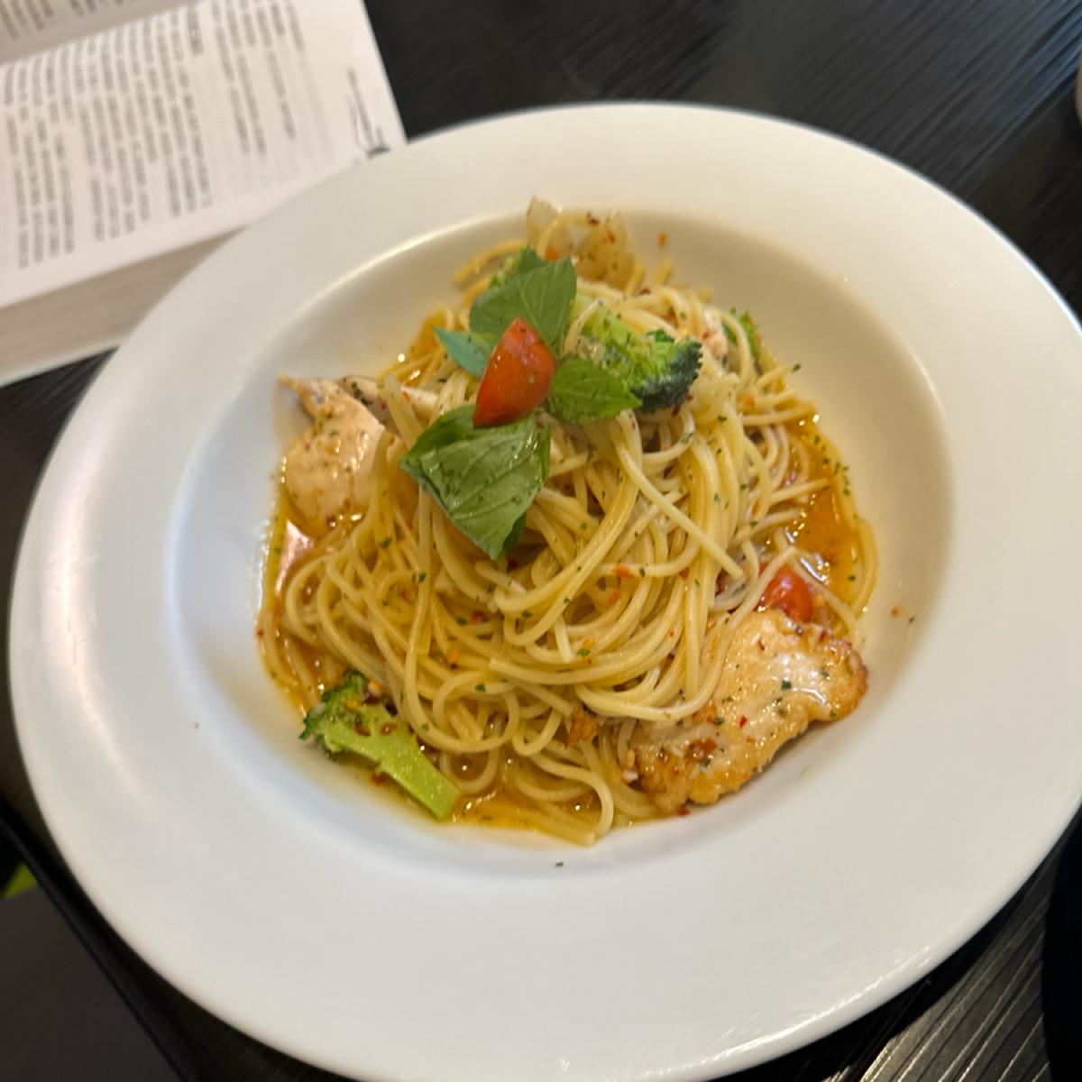 The portion of pasta is enough, and the shrimps are also prepared for you. It tastes very refreshing. In addition, the fried chicken and flower rings are freshly fried and very tender and delicious ~ you can try them!