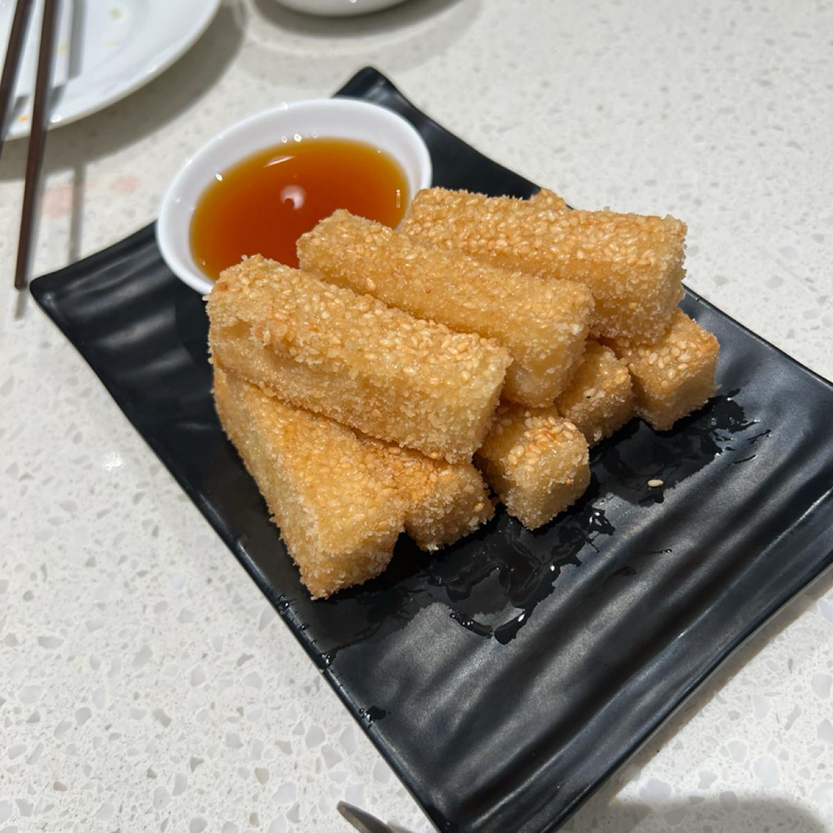 🍬 The dessert was brown sugar rice cake, crispy on the outside and chewy on the inside.