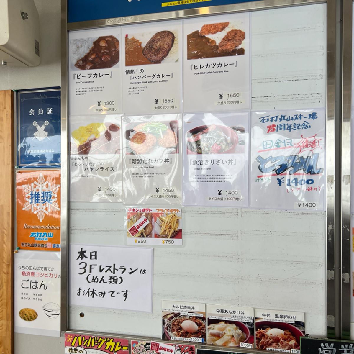There are quite a few items on the menu, but they are mainly rice dishes, as it primarily caters to skiing tourists. There are curry, beef stew rice, various fried foods... high-calorie options that generally taste okay but are a bit salty. There are also many varieties of desserts and drinks, making it a great place for a meal during breaks in sports.