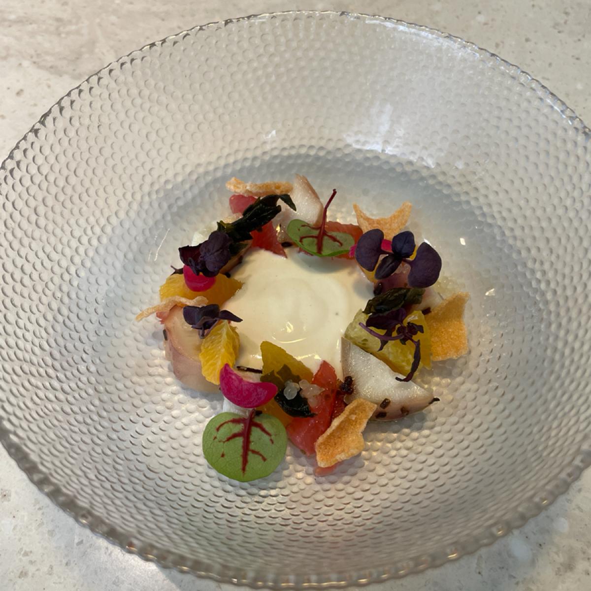 Originally this dish was rouge shrimp and tomato, but since neither of us eats shrimp or tomatoes, we changed it to octopus and citrus, paired with Australian Ricotta cheese (the clerk said it has a honey flavor, but I didn't taste it); The first taste of it scared me. It tasted like lemongrass (but my friend said there was no lemongrass flavor, and there was indeed no lemongrass in the ingredients). I don’t like lemongrass, so this is not my dish.
