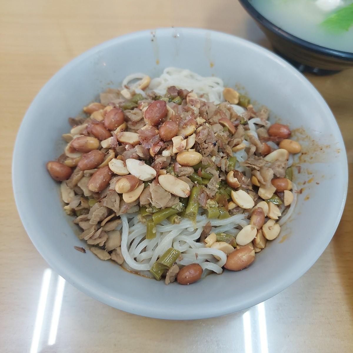 My first impression was that they were sesame noodles with peanuts and cowpeas. The noodles are not the common round oily noodles; they seem to be a type of fine pulled noodles, which have a good chewiness and texture. I don't have a particular preference for sesame noodles, and I find the combination of hard peanuts and sesame sauce quite subtle. Personally, I didn't like it too much, but the sour taste of the cowpeas combined with the spicy sauce from the condiment bar was quite delicious.