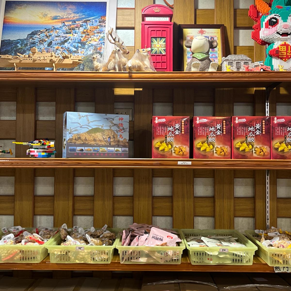 In addition to the Five-Element Sweet Potato Dumplings, Xiehe Food Store offers a wide variety of souvenirs. The shelves are neatly arranged, featuring everything from traditional cookies and dried seafood to Matsu-exclusive specialty foods, making it an ideal place for travelers to pick out items at their leisure.