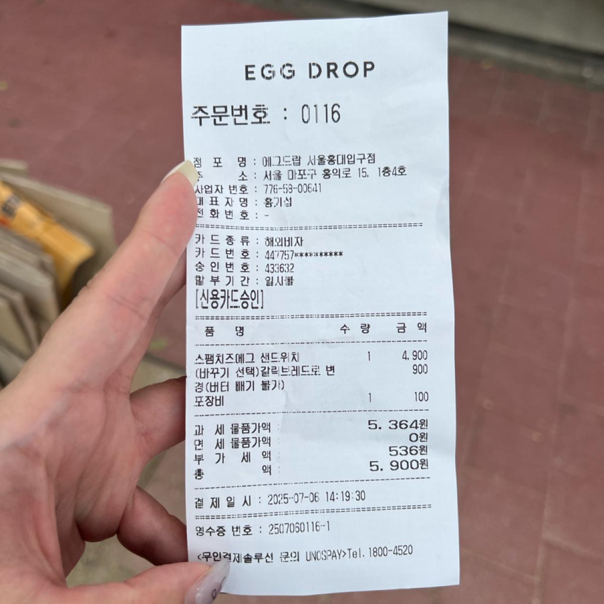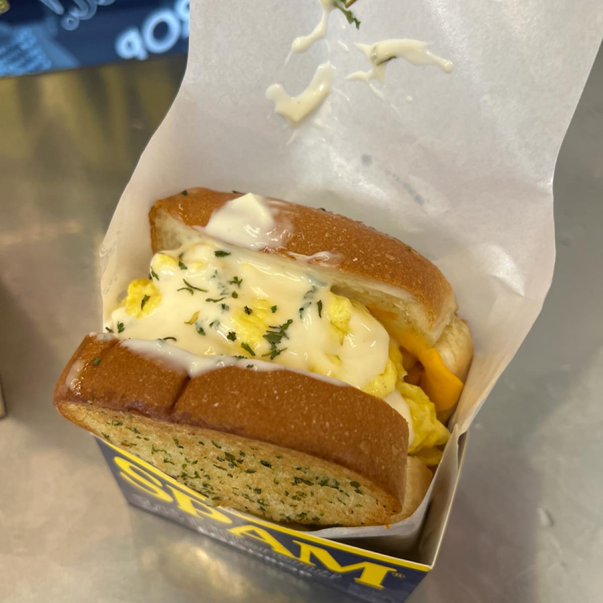 🔹 Spam Cheese Egg Sandwich ₩ 4900 + Garlic Bread ₩ 900