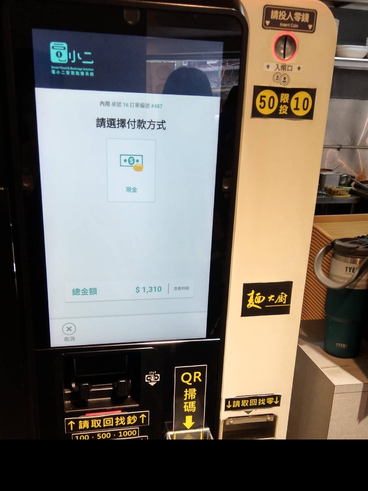 After entering the shop, you choose a seat, scan the QR code to place your order, select your flavor and noodle type, and decide whether you want to upgrade your portion or add toppings in advance. Then, you scan the barcode at the payment machine to check out. Only cash is accepted, and receipts are available.