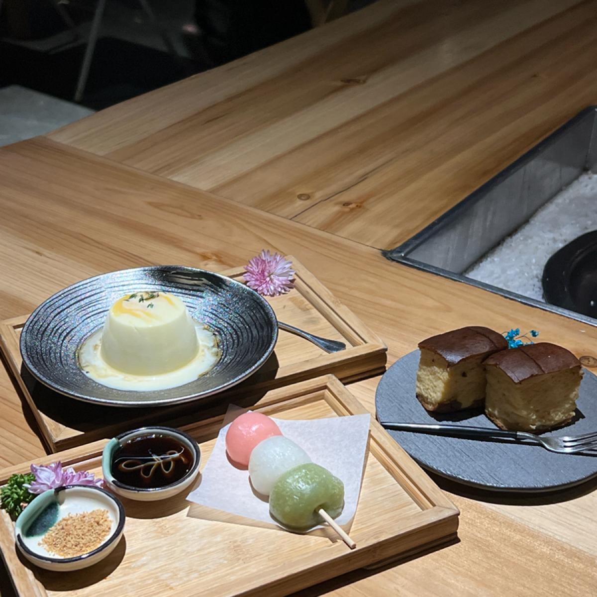 Desserts: Since there was too much food, we didn’t have the mixed rice, but the staff let us order an extra dessert. We chose caramel pudding, three-color dumplings, and Edo-style tamagoyaki. Notably, the tamagoyaki was different from what I expected; the restaurant prepared it more like a honey cake, but it had a rich egg flavor. The texture was soft and moist, making it easy to eat—very impressive!