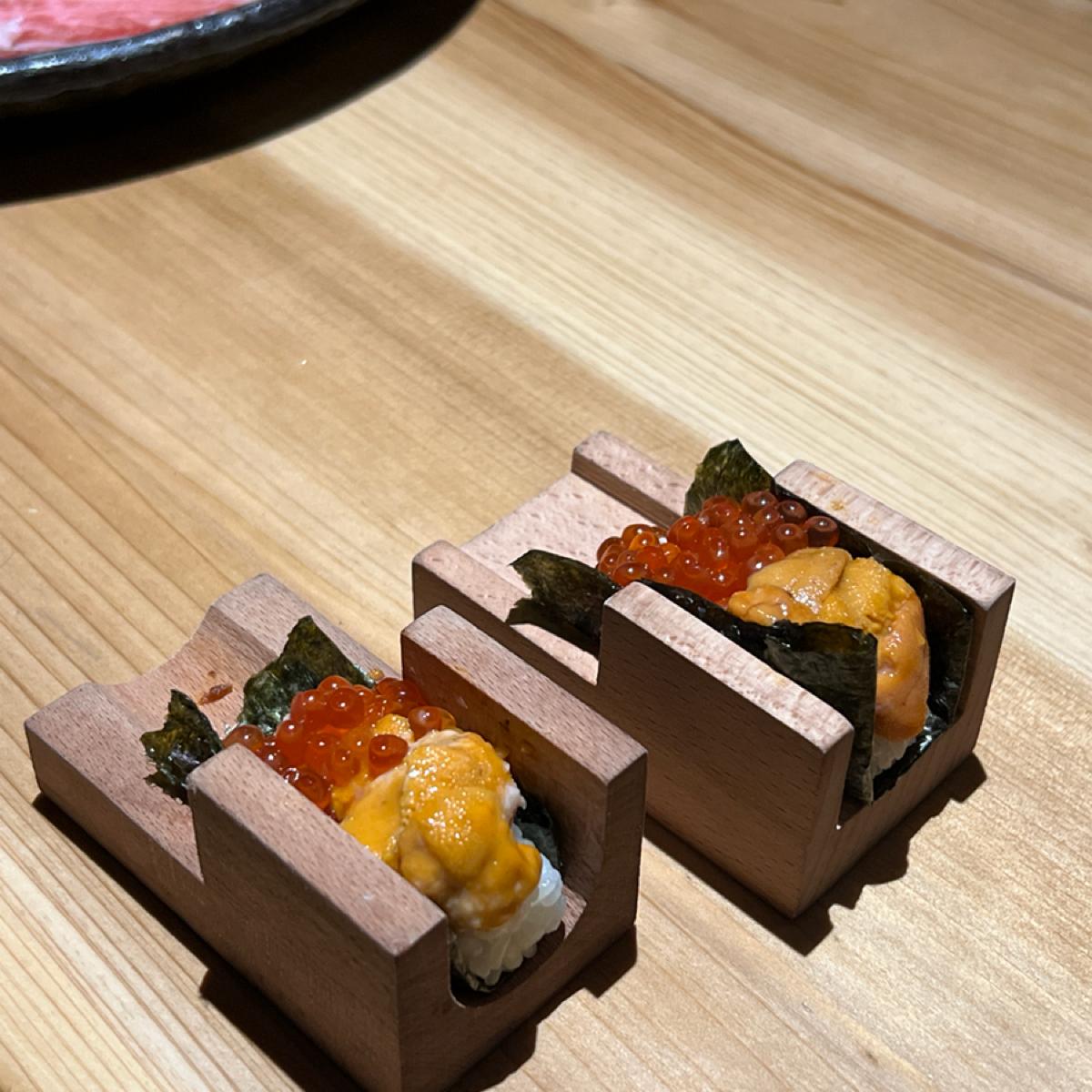 3️⃣ By checking in, you can add sea urchin salmon roe sushi for 💰100; you can add two portions to your set, and the sea urchin is extremely generous—a worthwhile addition!
