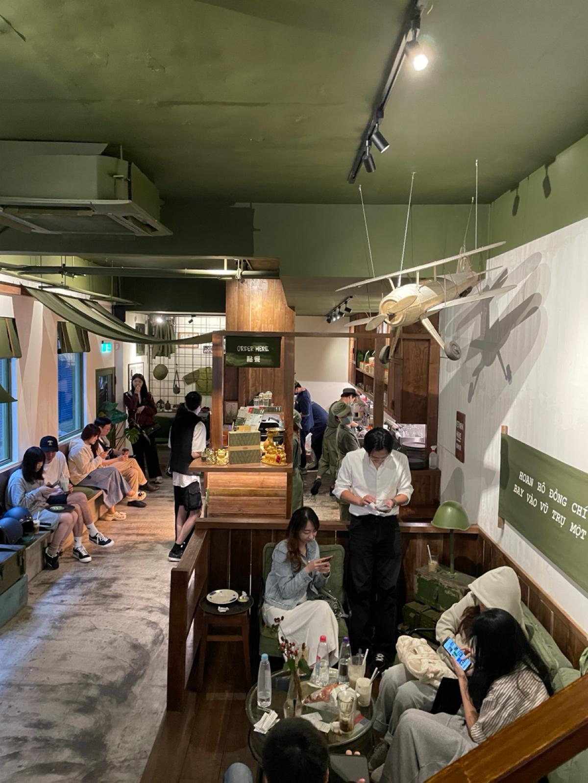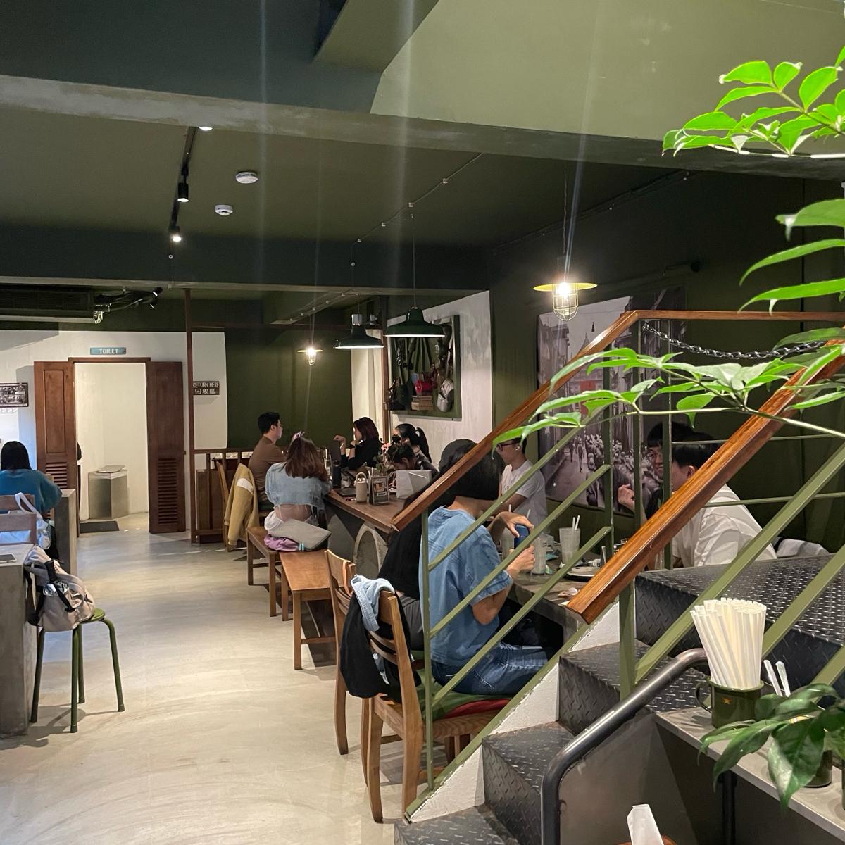 "Cộng Cà Phê Taipei Main Store" is located near Taipei Main Station, about a 3-minute walk from the Z8 exit. The entire building is military green, with seating areas on both the first and second floors. There are actually quite a few seats, but when I went on a Saturday afternoon at 4 PM, it was still packed, and I almost got the last available seat.